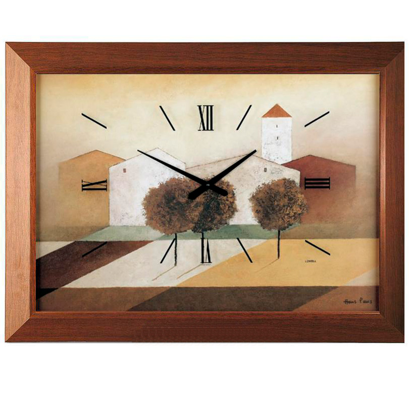 Настенные часы lowell 12205c. Настенные часы Lowell 12205C Часы – картины модель Lowell 12205c Итальянского Бренда Lowell великолепный подарок и украшение интерьера. Яркие и привлекательные, создающие ощущение настоящего живописного полотна, они станут изюминкой любого помещения и интерьера. Прямоугольный циферблат с изображением домов и деревьев. Рама изготовлена из дерева, отделана в цвете орех. Временные рамки обозначены большими римскими цифрами и визирами (черточками), которые нанесены при помощи старинной техники сериографии на внутренней стороне стекла вручную. Механизм: бесшумный кварцевый немецкой фирмы UTS. Произведены часы Бренда Lowell в Италии, начиная с 1972 г. Размер: 70*90 см. Гарантия: 1 год. Размер, см : 70х90 Цвет : Орех Материал : Дерево Механизм : Кварцевый (Германия)