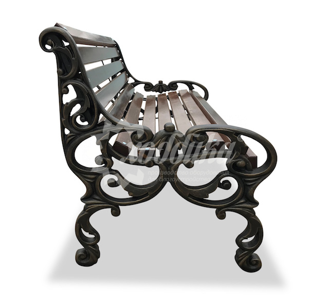 Чугунная скамейка «Трон» - оригинальная модель. Вы сможете её установить на территории приусадебного участка или классического паркового ансамбля. Неповторимый дизайн, воплощенный в чугунных опорах скамейки «Трон», выгодно отличает ее от других моделей. Напоминаем вам, о том, что вы можете выбрать несколько вариантов древесины: мы предлагаем высококачественный брус из лиственницы или сосны.