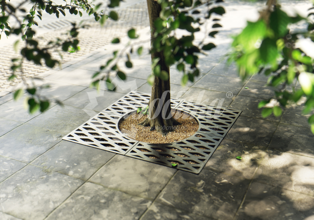 Приствольная решётка (квадратная) решеткус-1. Подробные характеристики Технические характеристики: Размеры: Высота: 30 мм Ширина: 1010 мм Радиус: 300 мм Длина: 1010 мм Цены на приствольные решетки узнавайте у менеджеров. О модели Приствольная решётка применяется для защиты корневой системы деревьев и кустарников. Монтаж производится в асфальтированную или мощеную дорожку и тротуар. Такие решетки не только упрощают уход за посадками, но и улучшают эстетический вид городских улиц, площадей и парков.