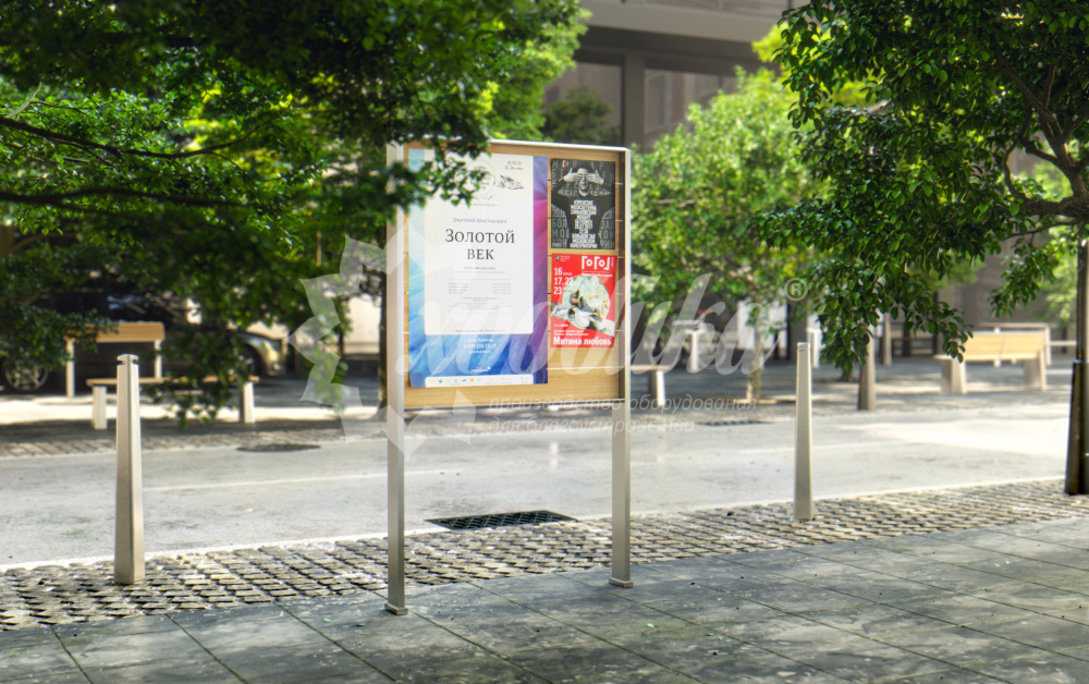Информационный стенд "стендус-1". Подробные характеристики Материалы: Опоры: Cталь. Покрыты порошковой полимерной краской. Возможность выбора цвета по каталогу RAL. Стандартный цвет (по умолчанию) - черный + бронзовое патинирование. Рекламный носитель: наклейка на стальном листе (отдельная опция). Технические характеристики: Высота: 1040 мм Ширина: 1200 мм О модели Информационный стенд Стендус-1. Используется как элемент информирования прохожих парка, большого садового участка и других площадей. Может устанавливаться внутри помещений. Опоры и каркас указателя выполнены из стали (отдельная опция). Разработку рекламного макета и его изготовление вы можете заказать на нашей фабрике.