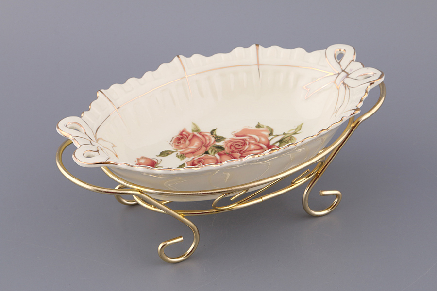 Блюдо на металл.подставке корейская роза 22*14*9 см.