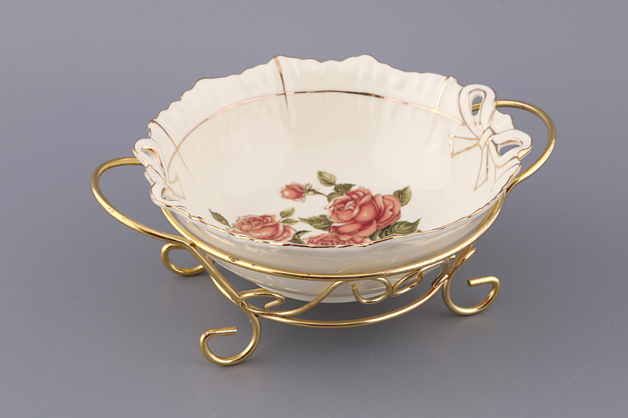 Салатник на металл.подставке корейская роза диаметр=17 см. высота=9 см.
