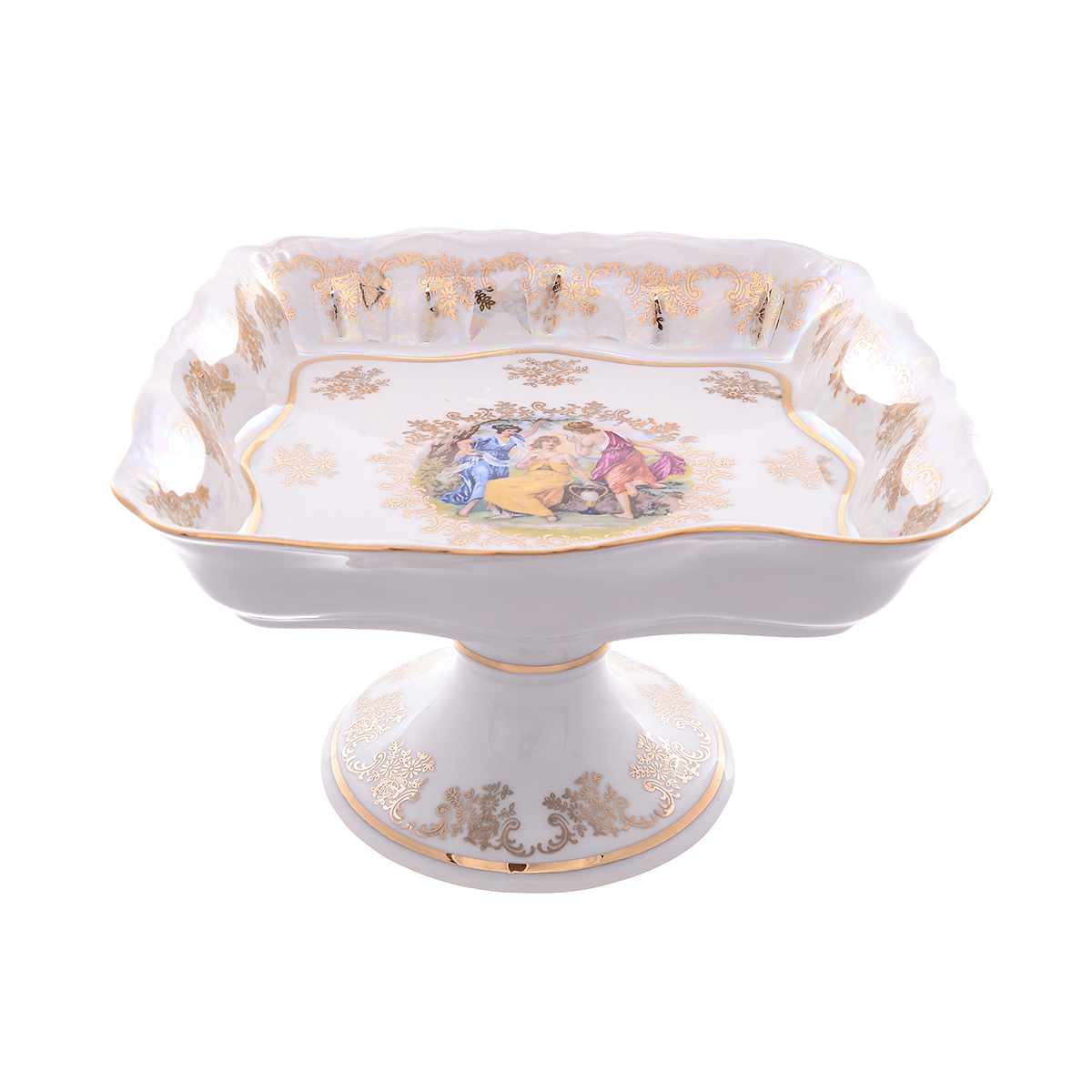 Салатник квадратный на ножке Queen S Crown мадонна перламутр 26см