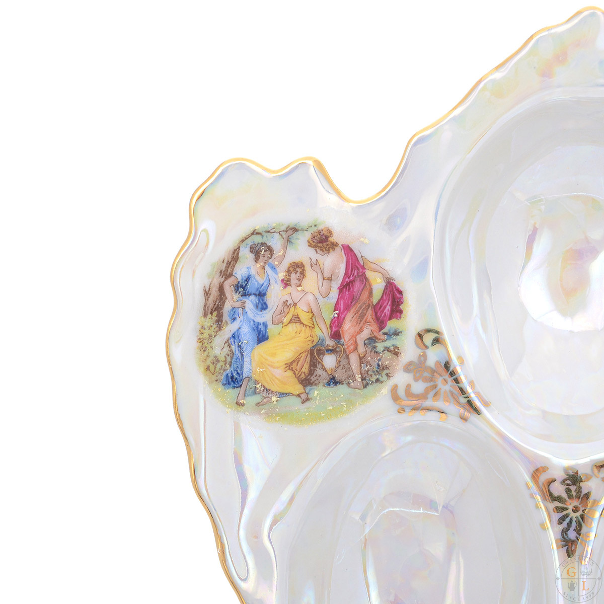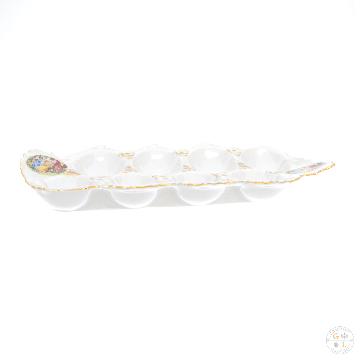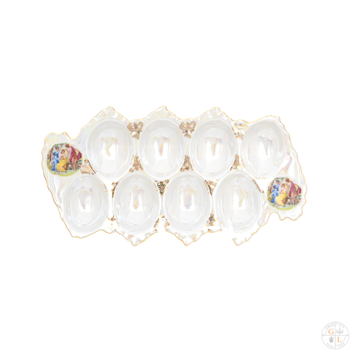 Поднос для яиц queens crown мадонна перламутр 25 см. Поднос для яиц 25 см Мадонна перламутр Корона Тарелка для яиц из чешского фарфора станет незаменимым аксессуаром на вашем столе. Она красивая, удобная, а главное – станет практичным дополнением вашей кухни. Тип товара салфетки-подставки (Чехия, Фарфор, Queens Crown) Страна происхождения Чехия Материал Фарфор Бренд Queens Crown Серия Мадонна перламутр Назначение Предмет домашнего обихода из фарфора