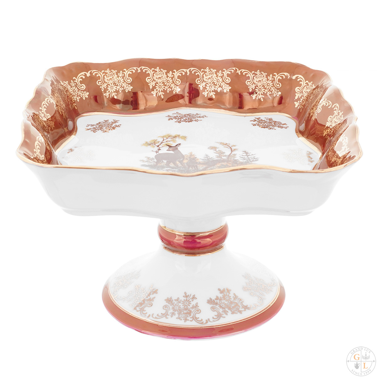 Салатник квадратный на ножке Queens Crown охота красная корона 26см