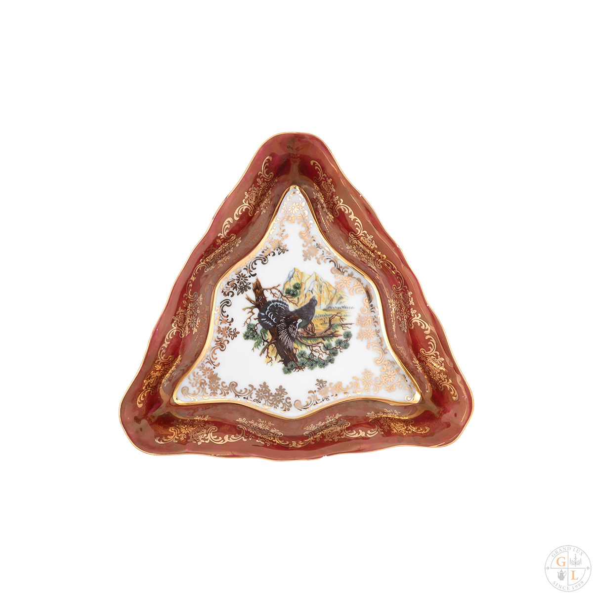 Салатник треугольный на ножке Queens Crown охота красная 19 см