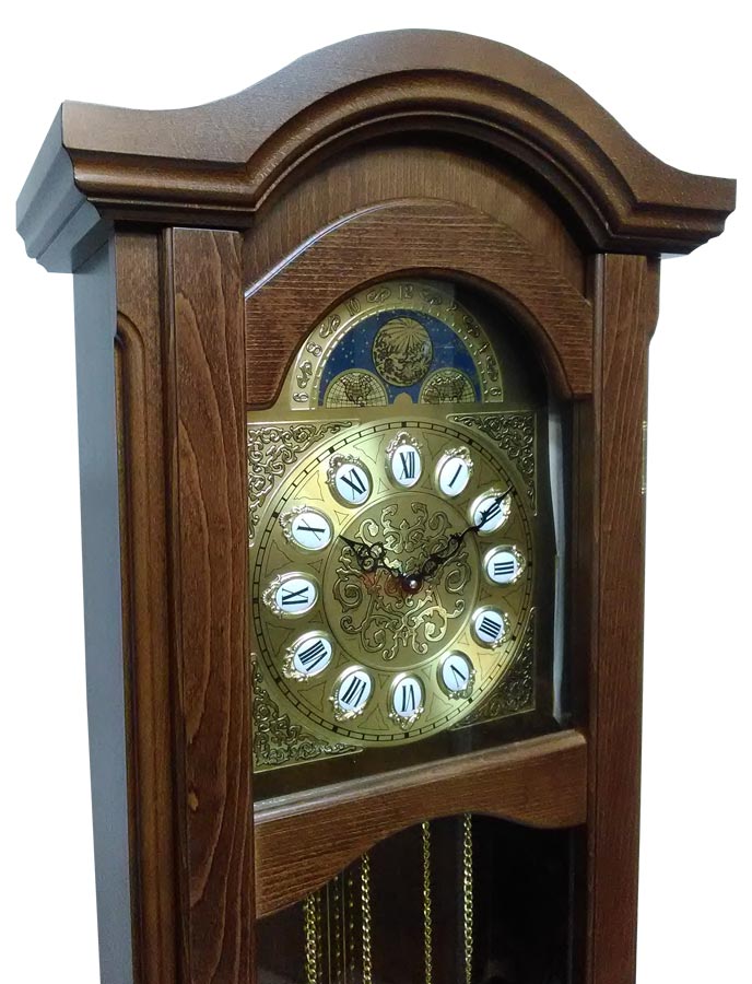 Напольные кварцевые часы арт. 1288-30-179. Напольные кварцевые часы Hermle Арт. 1288-30-179 Напольные часы Hermle Арт. 1288-30-179 имеют надежный кварцевый механизм с мелодией, боем и маятником и качественный корпус из дерева цвета грецкого темного ореха. Корпус часов изготовлен в Европе. Качественный корпус. Корпус часов увенчан легким арочным фронтоном. Циферблат из полированной латуни, с тисненым узором по центру и тиснеными надсводными уголками, с римскими цифрами накладными эмалевыми цифрами. Имитация лунного календаря. Лирообразный маятник и гири, цвета глянцевой латуни. Ручное и автоматическое отключение мелодии. 2 мелодии на выбор. Бой каждый час. Маятник полированный, с лирой. Характеристики часов Hermle Арт. 1288-30-179 Корпус: фасад- дерево Цвет: темный орех. Стекло: минеральное. Размер: 195х49х25 см Гарантия: 1 год Мелодия Westminster и Бим-Бам Бой каждый час. Ночной режим Регулировка громкости