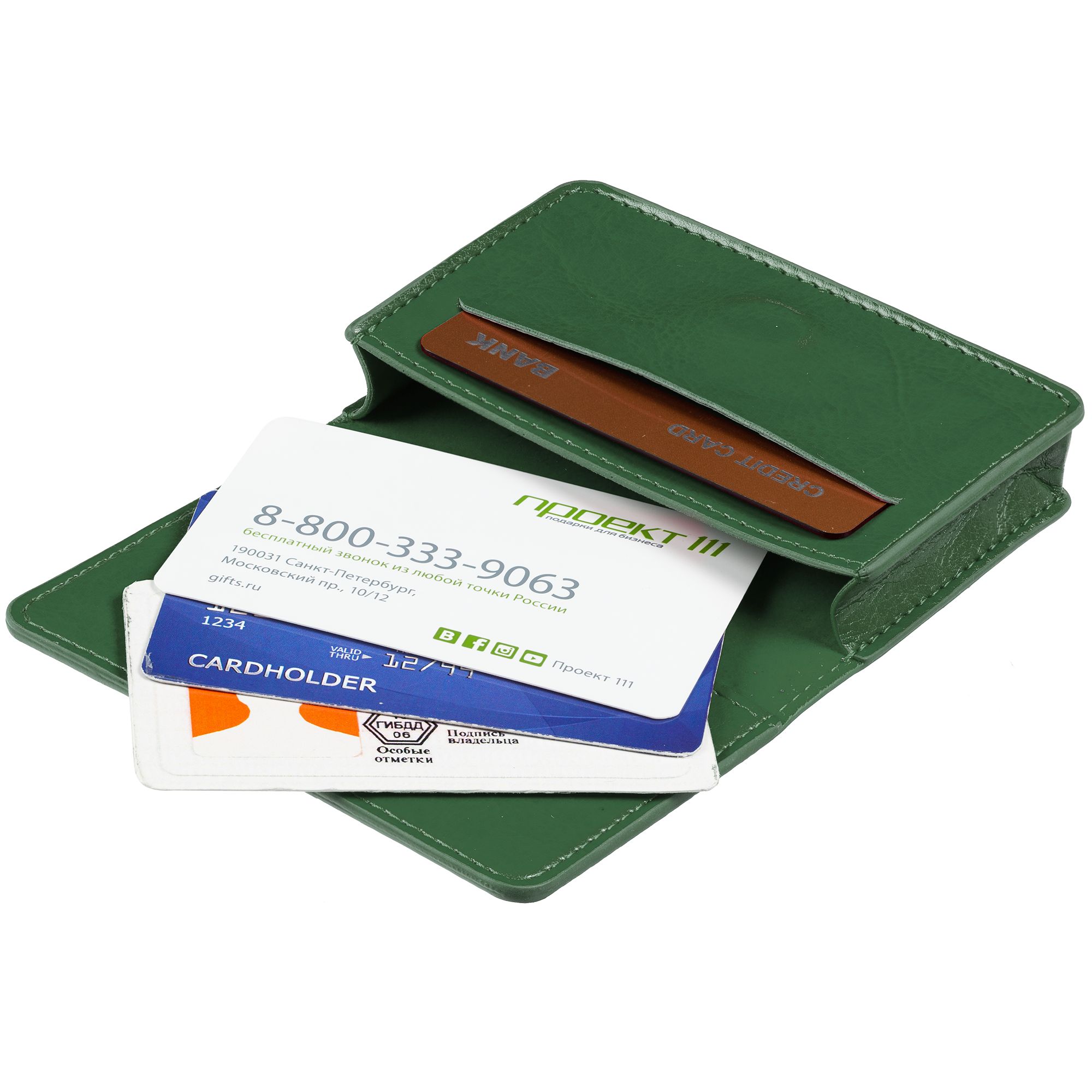 Футляр для визиток nebraska, зеленый. Коллекция Nebraska Размеры 10,5х6,8 см Материал искусственная кожа Вес (1 шт.) 15,00 г Транспортная упаковка 24,0x27,0x32,0 см Вес 1,50 кг Объем упаковки 0,021 м? Количество в упаковке 100 шт. Виды нанесения LC2-Лазерная гравировка SH-Шелкография T1-Тиснение бесцветное T2-Тиснение фольгой (1 цвет) Основное отделение на 35 визиток и два кармана для карт. Футляр выполнен из материала Nebraska, подкладка из искусственного велюра.  развернуть описание ▼