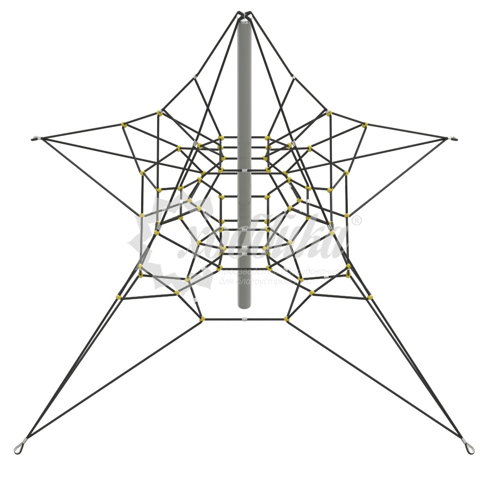 Канатная конструкция «смарт». Подробные характеристики Материалы: Армированный полипропиленовый канат, соединители выполнены из полиамида. Характеристики: Длина: 4600 мм Ширина: 4600 мм Высота: 2800 мм О модели Канатная конструкция «Смарт» может использоваться как в помещении, так и на открытых площадках. Труба в комплект не входит.