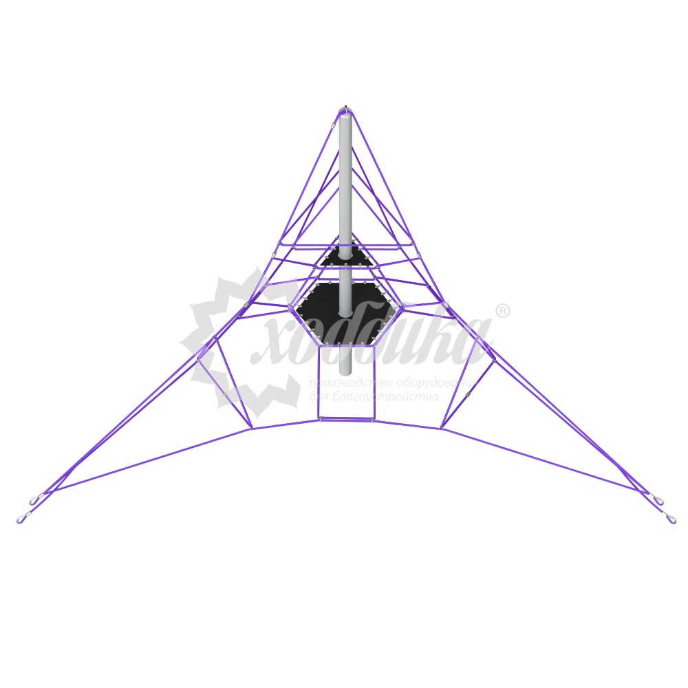 Канатная конструкция «вышка». Подробные характеристики Материалы: Армированный канат, металлические соединители, оцинкованный коуши, металлическое навершие. Монтаж конструкции производится путем бетонирования закладных (центральной и боковых). Характеристики: Длина: 5000 мм Ширина: 5000 мм Высота: 3000 мм О модели Канатная конструкция «Вышка» может использоваться как в помещении, так и на открытых площадках. В центре размещаются 2 резиновые вставки, которые отличаются особенной прочностью.