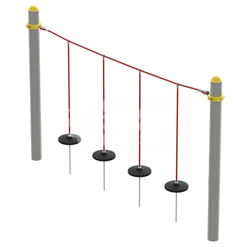 Изготовлена из армированного каната, в комплект также входят резиновые сиденья, цепи (для фиксации сидений снизу к земле), стальные хомуты для крепления каната к опорным столбам, пластиковые заглушки со сферической шляпкой для закрытия торца столба.