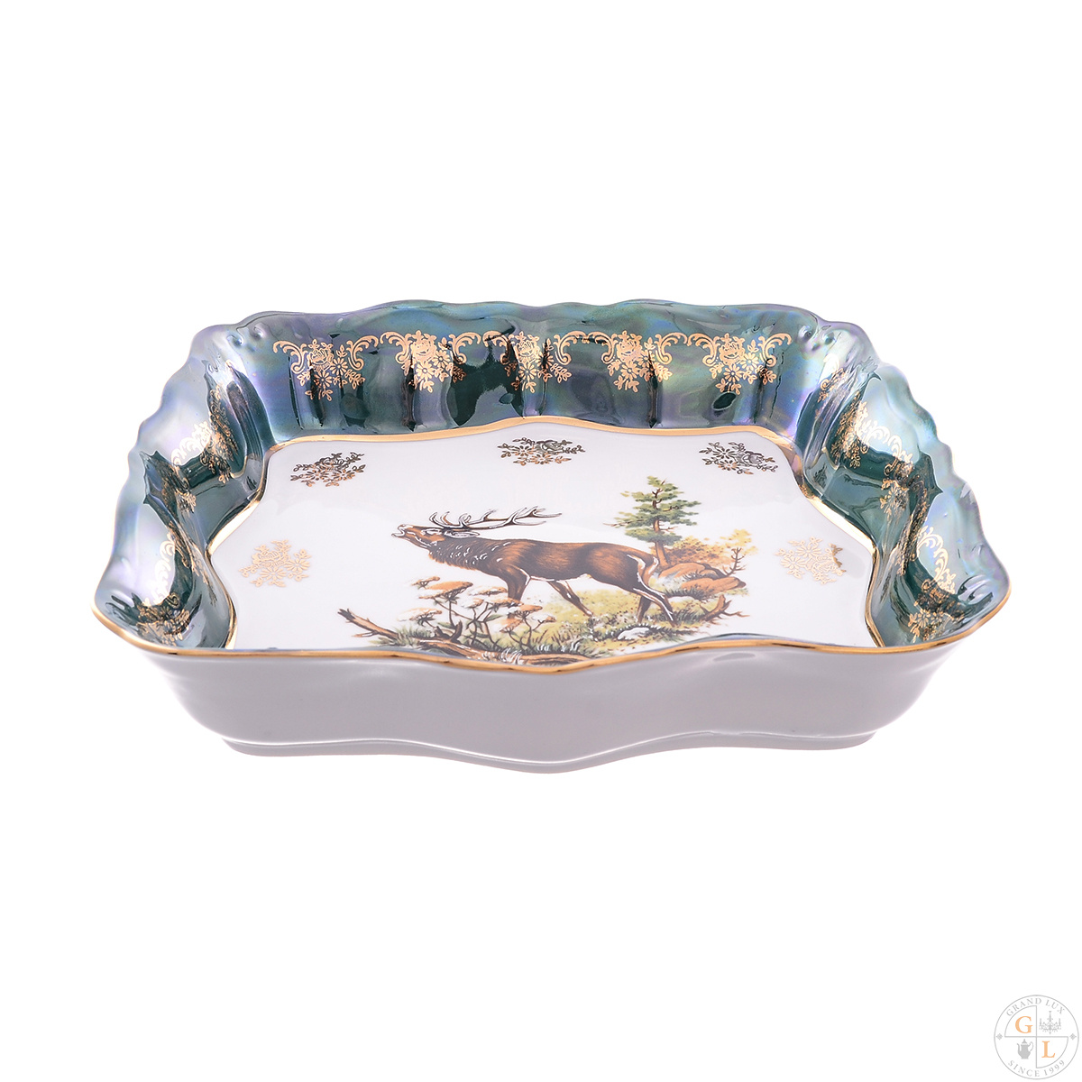 Салатник квадратный Queens Crown корона охота зеленая 26 см