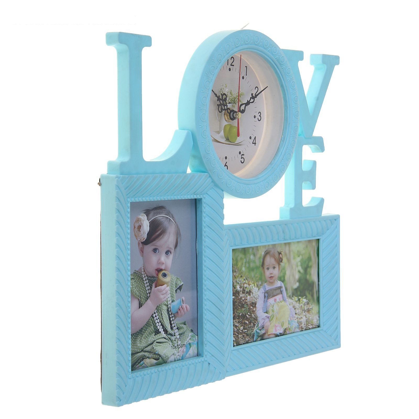 Часы настенные с фоторамкой Love, голуб, 2 фото(10х15), 32х30,5х3 см