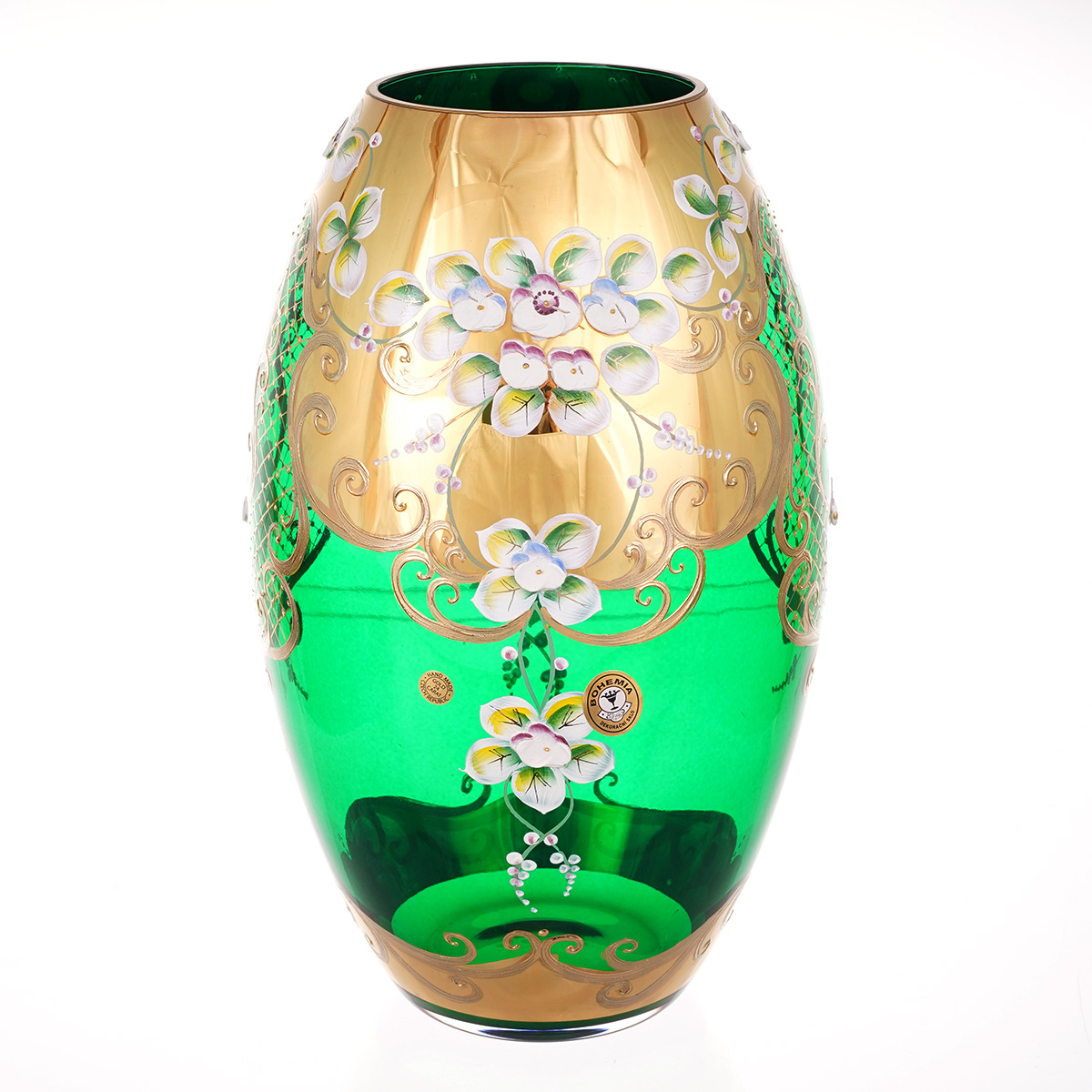 Ваза для цветов bohemia лепка зелёная 30см. Ваза для цветов Bohemia Лепка зелёная 30см Очаровательная ваза-кубышка в цвете изумруда с золотой отделкой – это хит продаж. Вазами данного типа можно декорировать празднично сервированный стол, что придаст ему еще более торжественный и презентабельный вид. Изделие произведено из хрустального стекла, декорировано позолотой и элементами ручной лепки. Благодаря высокому качеству, очаровательная вазочка будет долго радовать вас своей красотой и практичностью. Высота изделия - 30 см  развернуть описание ▼