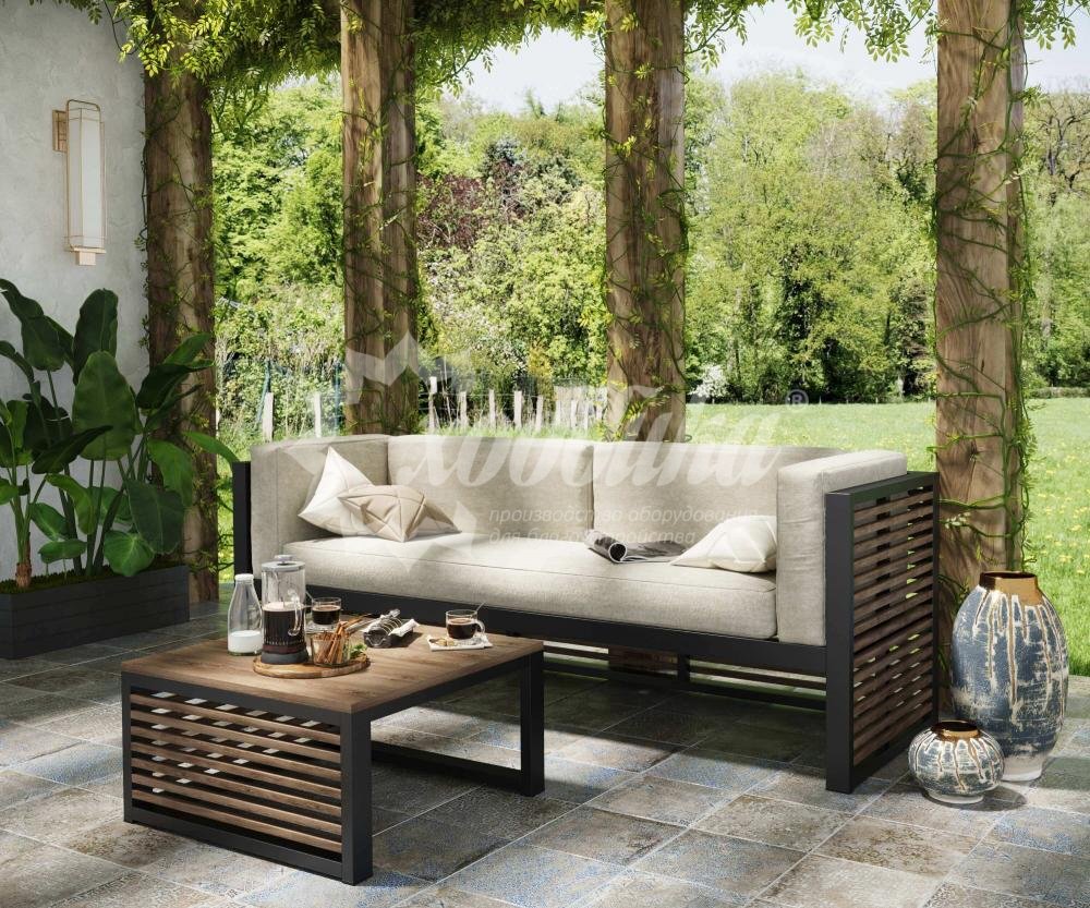 Опоры: Профильная труба 60х30 мм, рейки 20х20 мм из хвойных пород древесины - ангарская сосна (варианты исполнения: лиственница) различного сечения. Огнебиозащитные пропитки + тонировочный состав с антисептиком + два слоя яхтного лака с промежуточным шлифованием. Возможность выбора цвета из палитры.