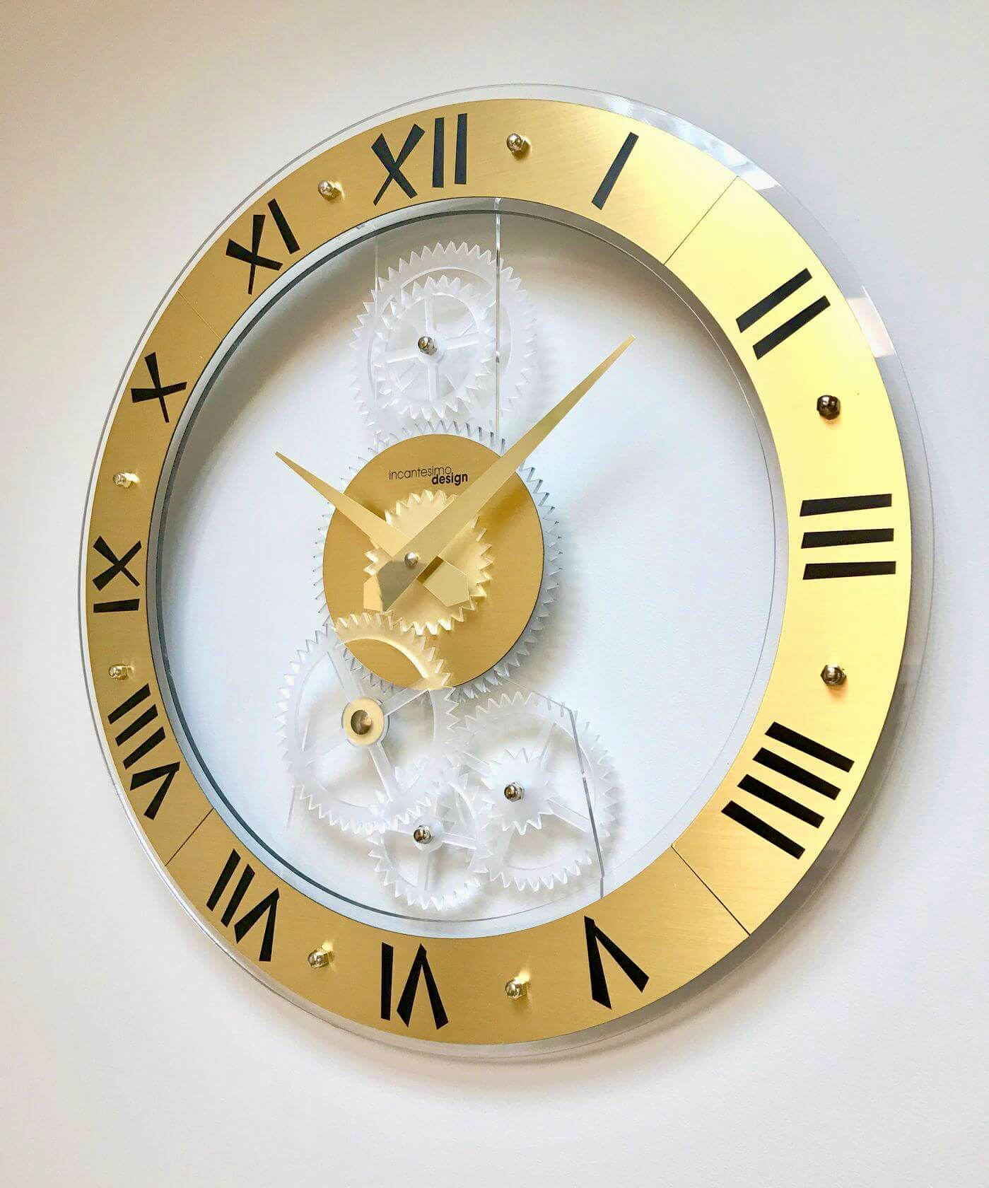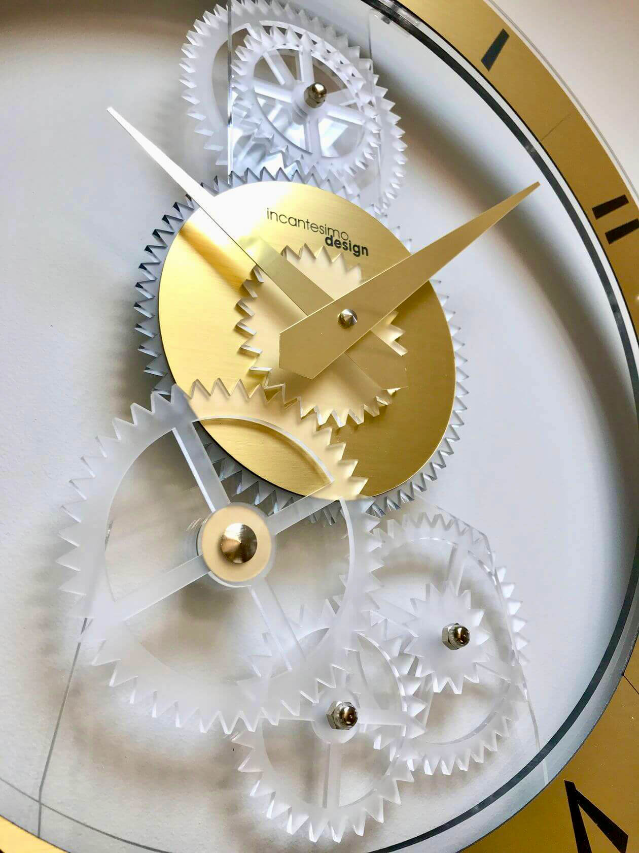 Настенные дизайнерские часы genius. Настенные дизайнерские часы Genius incantesimo Design - с итал. можно перевести как волшебство дизайна. Модель Genius воплощение смелости и воздушности в дизайне помещения. Настенные дизайнерские часы Genius имеют надежный и бесшумный часовой механизм плавного хода - UTS( Германия) Корпус из метакрилата и синтетического стекла с имитацией деталей механизма Стрелки - шлифованная тонкая сталь выполнены в цвет корпуса Циферблат обозначен крупными арабскими цифрами черного цвета Размер 45 см. В комплект входит: - часовой механизм со встроенными стрелками - саморез -батарейка 1АА Характеристики часов Incantesimo Design Модель Genius: Механизм: Кварцевый Цвет: золотой Материал: металл Дизайн и производство: Италия (Милан) Гарантия: 1 год с момента покупки Модели этого бренда выполнены в современных тенденциях моды и исполнены в нескольких цветовых вариантах. Сделанные с помощью высоких инновационных компьютерных технологий с привлечением ручной работы.
