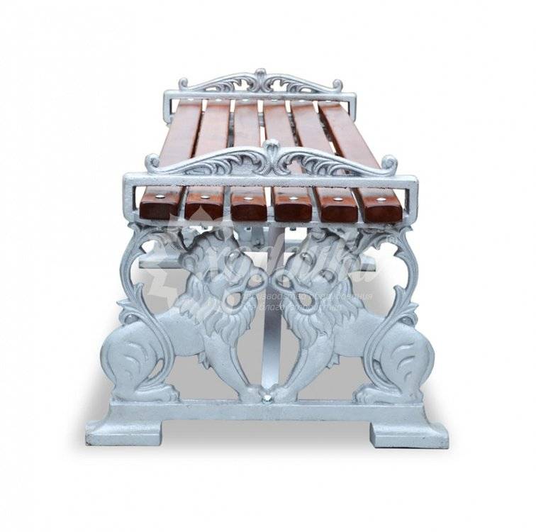 Банкетка алюминиевая «львы». Подробные характеристики Скамейка поставляется в разобранном виде! В производстве алюминиевых скамеек мы используем ангарскую сосну. Материалы: Опоры: Алюминиевое художественное литьё. Не требуют вообще никакой обработки и защиты лако-красочными материалами. По вашему желанию опоры могут быть покрыты порошковой полимерной краской. Возможность выбора цвета по каталогу RAL. Стандартный цвет (по умолчанию) - серебристый. Сиденье и спинка: Брус - ангарская сосна (вариант исполнения: лиственница, композитные материалы) различного сечения. Огнебиозащитные пропитки + тонировочный состав с антисептиком + два слоя яхтного лака с промежуточным шлифованием. Возможность выбора цвета из палитры. Фурнитура: Оцинкованная. Возможность выбора цвета фурнитуры по каталогу RAL. Стандартный цвет (по умолчанию) - серебристый. Возможность использования потайной/скрытой фурнитуры. Технические характеристики: Высота: 500 мм Ширина: 600 мм Длина: 600 - 3000 мм Высота сиденья: 410 мм Ширина сиденья: 430 мм Длина посадочного места: 600 - 3000 мм Вес: от 45 кг Варианты цвета на выбор: , махагон, палисандр, тик,
