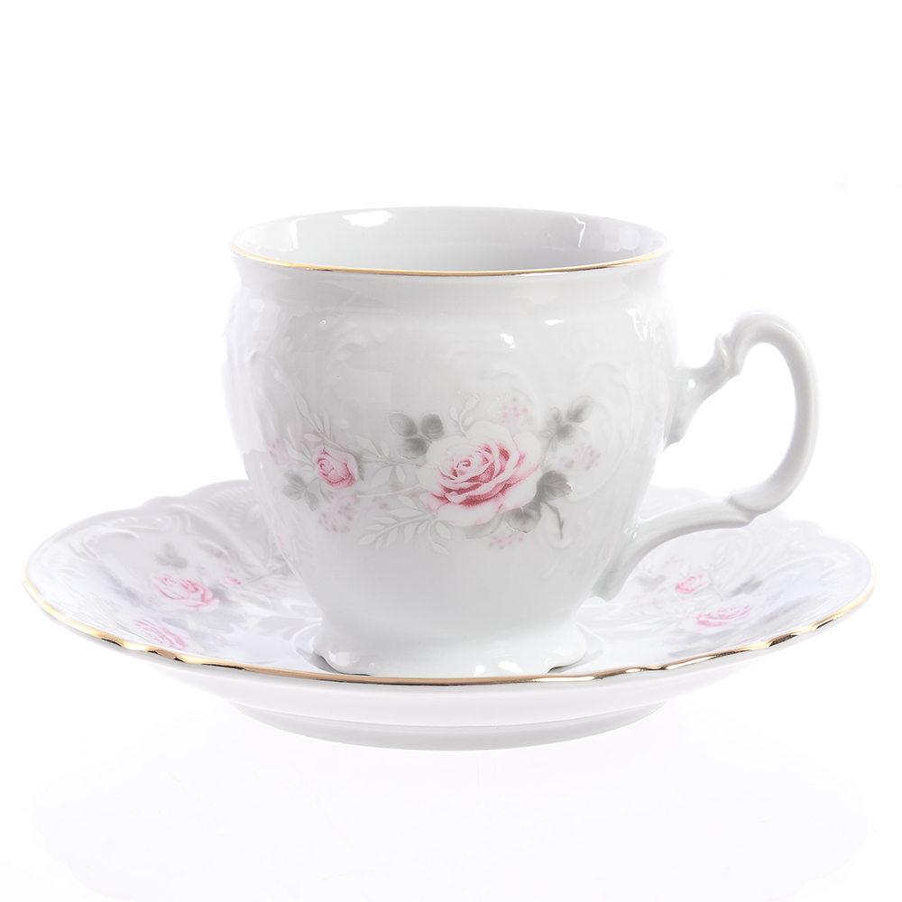Набор чайный пар бочка Bernadotte серая роза золото 240 мл(6 пар)