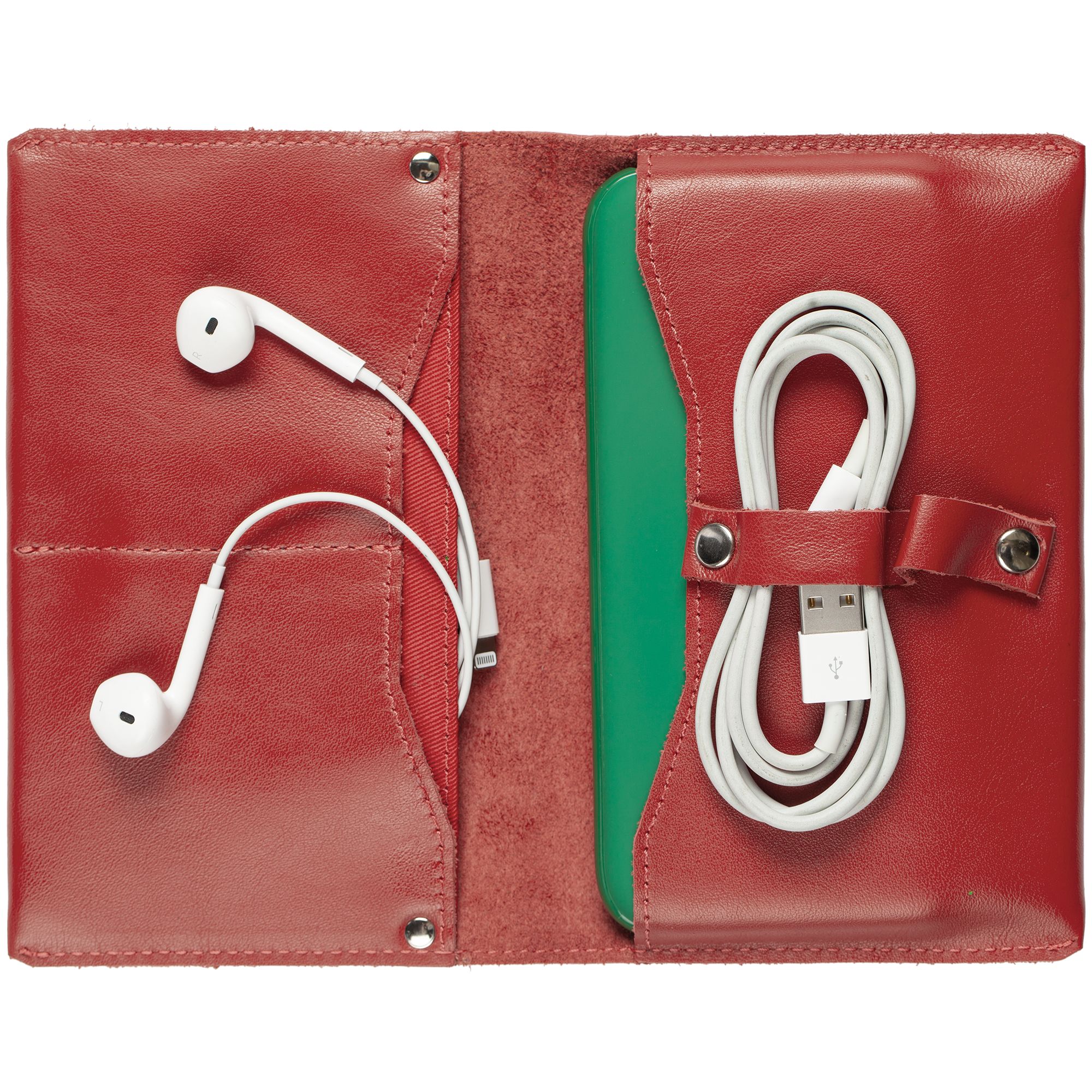 Органайзер для зарядных устройств apache, красный. Коллекция Apache Размеры 16,2х10х2 см; упаковка: 18,5х11,7х4,5 см Материал натуральная кожа Вес (1 шт.) 87,50 г Транспортная упаковка 47,0x34,0x28,0 см Вес 3,50 кг Объем упаковки 0,045 м? Количество в упаковке 40 шт. Виды нанесения LC3-Лазерная гравировка LSC-Шильды: латунь с покрытием SH-Шелкография (1 цвет) T1-Тиснение бесцветное T2-Тиснение фольгой В органайзере есть два крепления на кнопке и четыре кармана разных размеров для проводов, наушников и зарядных устройств.  развернуть описание ▼