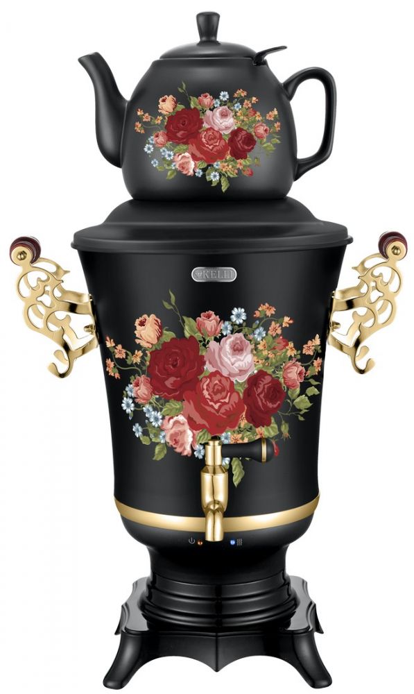 Самовар Kl-1346 Kelli 4л 2300вт пластик с чайником 0,9л. декор черн.