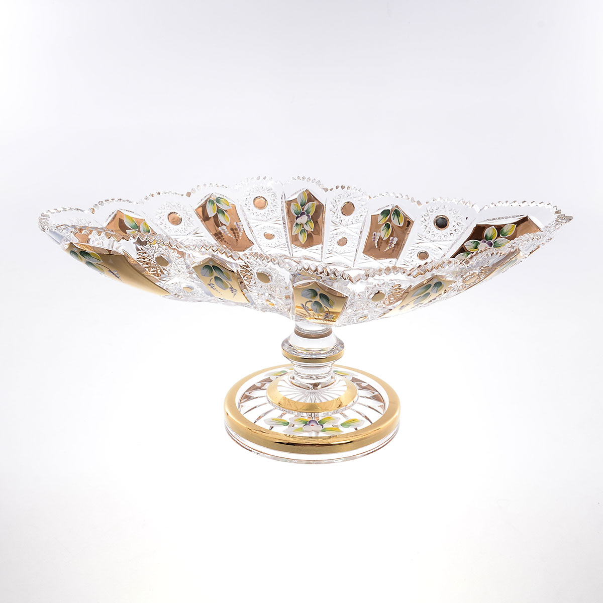 Фруктовница на ножке Bohemia Max Crystal золото 38см