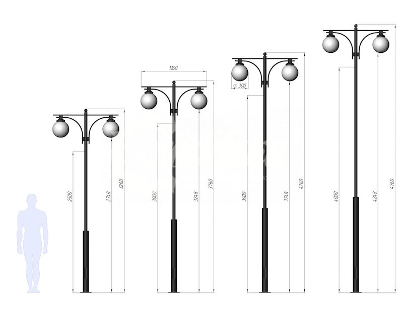 Стальной фонарный столб т-03-2 со светильниками