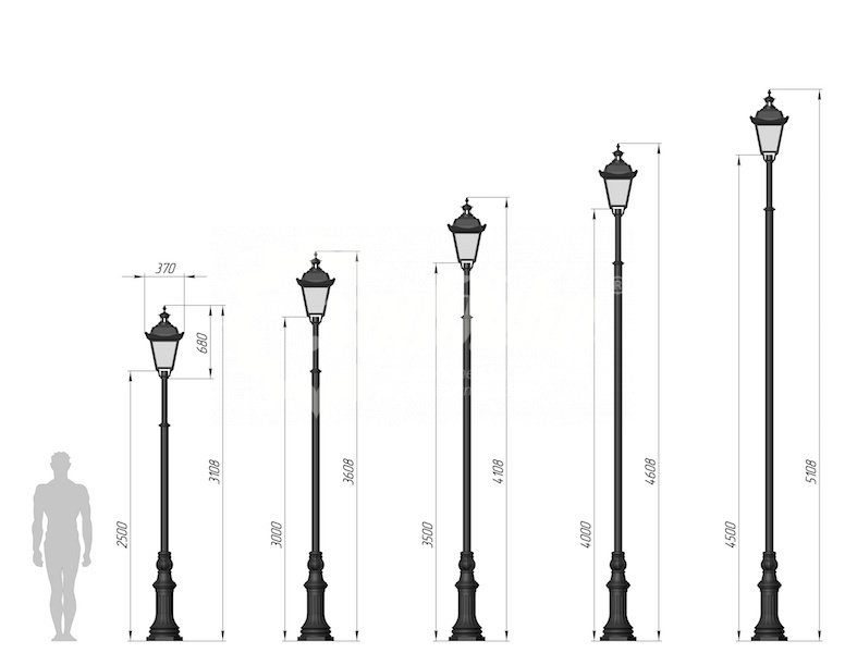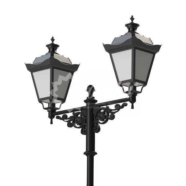 Фонарь уличный «адмирал - 1» со светильником. Подробные характеристики Материалы: Основание и кронштейн: Чугунное художественное литьё. Покрыты порошковой полимерной краской. Возможность выбора цвета по каталогу RAL. Стандартный цвет (по умолчанию) - черный + бронзовое патинирование. Стойка: Сталь. Покрыта порошковой полимерной краской. Возможность выбора цвета по каталогу. Стандартный цвет (по умолчанию) - черный + бронзовое патинирование. Светильник: Ретро. Технические характеристики: Источник света: Патрон E-27 под лампу накаливания до 150 Вт, либо энергосберегающую лампу. Возможна комплектация ПРА под Nat70, Nat100, ДРЛ80, ДРЛ125 и источником света. Возможно комплектование светодиодными модулями. Высота: от 3,108 до 5,108 м Вес: от 102 кг Установка производится путем бетонирования стойки (закладного фундамента), либо бетонированием закладной детали с последующим креплением стойки болтовым соединением. Закладной фундамент заказывается отдельно и в цену не входит. О модели Используется для освещения парков, скверов, коттеджных поселков, частных домов, прилегающих территорий зданий. Установка производится путем бетонирования стойки (глубина 1,2 метра), либо бетонированием закладной детали с последующим креплением стойки болтовым соединением.