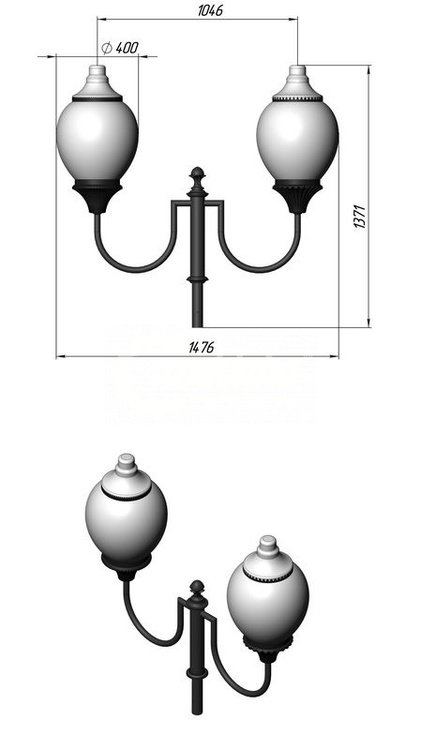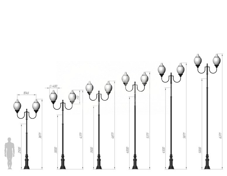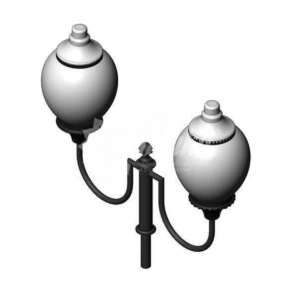 Фонарь уличный «лотос - 2» со светильниками. Подробные характеристики Материалы: Основание и кронштейн: Чугунное художественное литьё. Покрыты порошковой полимерной краской. Возможность выбора цвета по каталогу RAL. Стандартный цвет (по умолчанию) - черный + бронзовое патинирование. Стойка: Сталь. Покрыта порошковой полимерной краской. Возможность выбора цвета по каталогу. Стандартный цвет (по умолчанию) - черный + бронзовое патинирование. Светильник: Лотос. Технические характеристики: Источник света: Патрон E-27 под лампу накаливания до 150 Вт, либо энергосберегающую лампу. Возможна комплектация ПРА под Nat70, Nat100, ДРЛ80, ДРЛ125 и источником света. Возможно комплектование светодиодными модулями. Высота: от 3,871 до 6,371 м Вес: от 96 кг Установка производится путем бетонирования стойки (закладного фундамента), либо бетонированием закладной детали с последующим креплением стойки болтовым соединением. Закладной фундамент заказывается отдельно и в цену не входит. О модели Используется для освещения парков, скверов, коттеджных поселков, частных домов, прилегающих территорий зданий. Установка производится путем бетонирования стойки (глубина 1,2 метра), либо бетонированием закладной детали с последующим креплением стойки болтовым соединением.