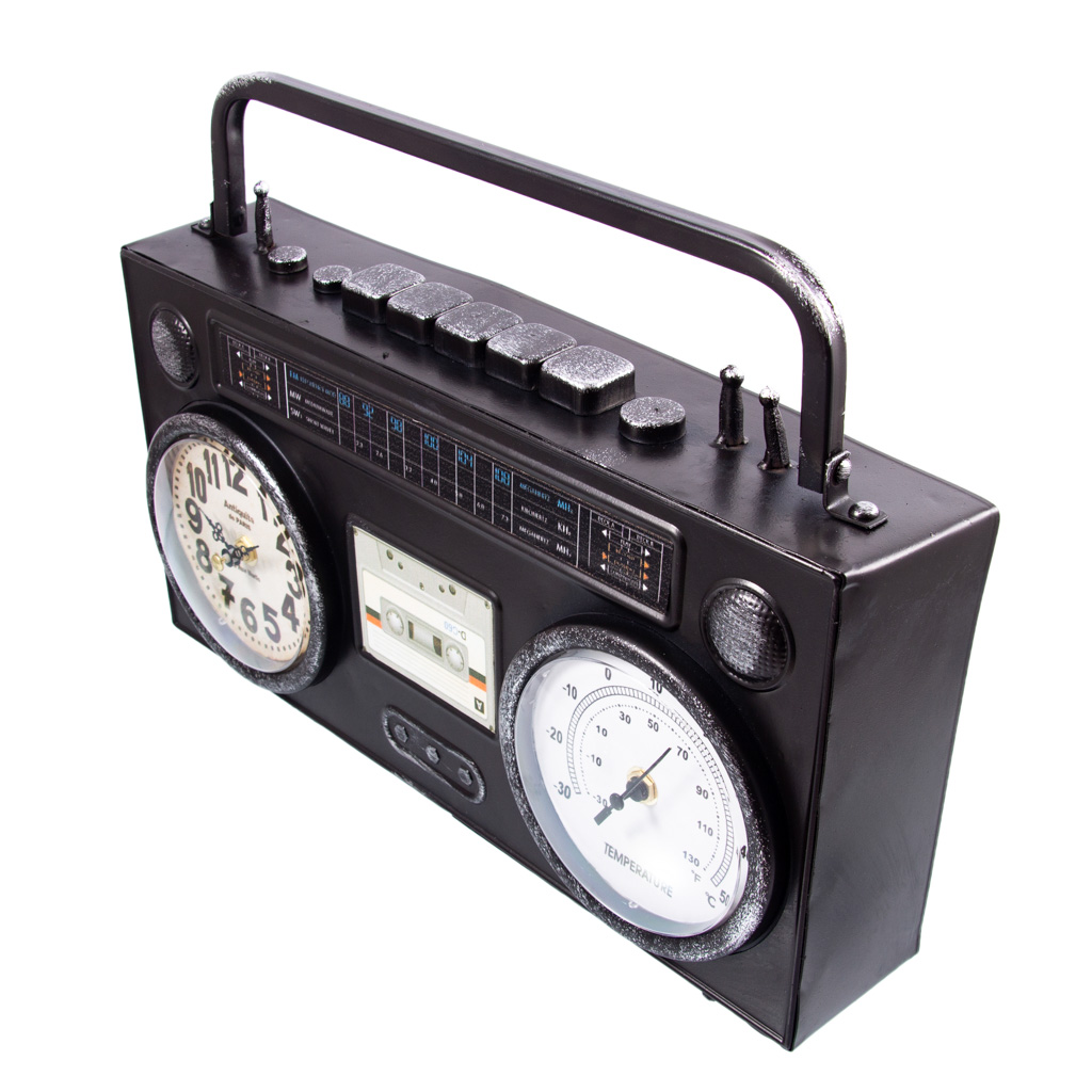 Часы-термометр настольные "ретро магнитофон" 36*10*21см. Артикул: 138631 Материал: Металл Назначение: Кабинет, Гостиная, Прихожая, Спальная Направленность: Женские, Мужские Сертификация: Товар не подлежит обязательной сертификации. Состав: металл.