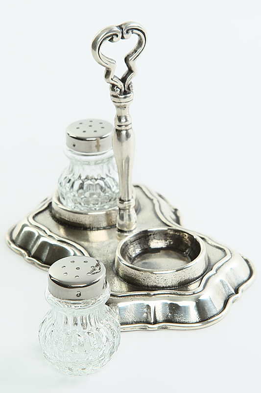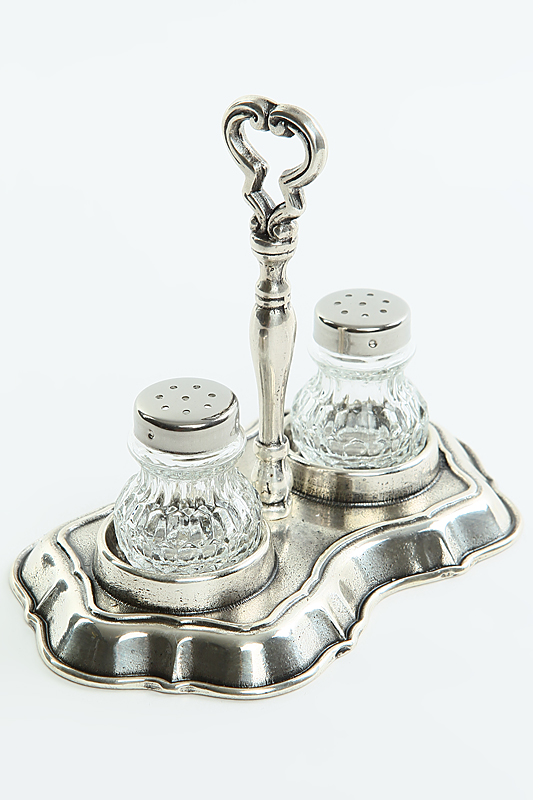Солонка и перечница стеклянные на подставке, 13х10,5 см