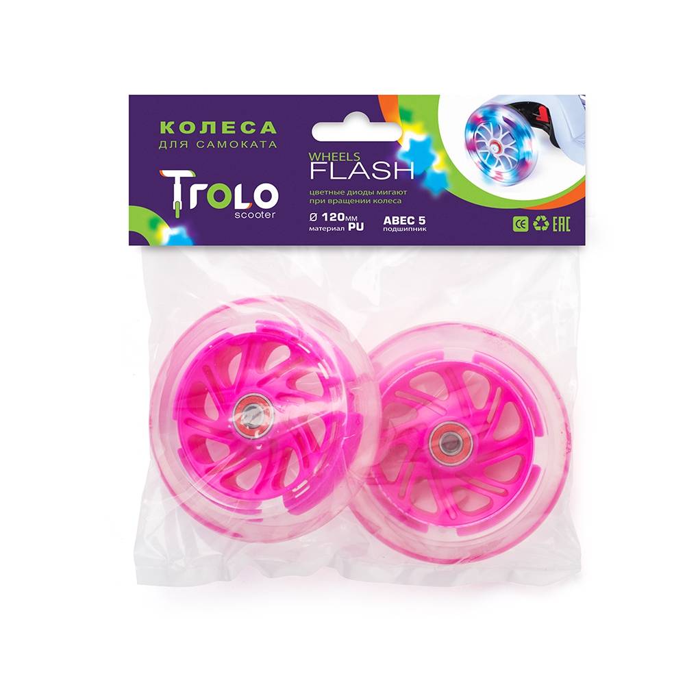 Светящиеся колеса (front) розовый. Артикул: 141009 Производитель: Trolo Цвет: Розовый Тип/материал колес: Полиуретановые светящиеся Размер колес : 120 мм