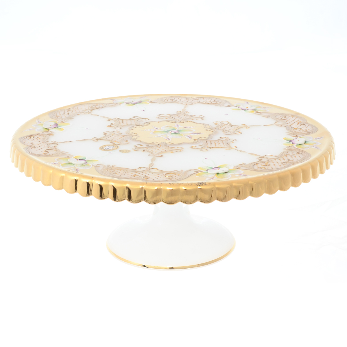 Тортница на ножке Bohemia лепка белая E-s 32 см