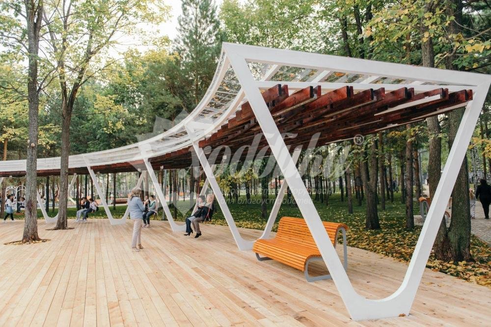 Пергола-качели «релакс». Подробные характеристики Материалы: Опоры: Сталь. Покрыты порошковой полимерной краской. Возможность выбора цвета по каталогу RAL. Стандартный цвет (по умолчанию) - черный. Крыша: Брус из хвойных пород древесины - ангарская сосна (варианты исполнения: лиственница, композитные материалы, термодерево). Огнебиозащитные пропитки + тонировочный состав с антисептиком + два слоя яхтного лака с промежуточным шлифованием. Возможность выбора цвета из палитры. Фурнитура: Оцинкованная. Стандартный цвет (по умолчанию) - серебристый. Возможность использования потайной/скрытой фурнитуры. Технические характеристики: Длина: 15 000 мм Высота: 2600 мм Внимание: скамейка в комплект не входит! Варианты цвета на выбор: , тик, махагон, палисандр,