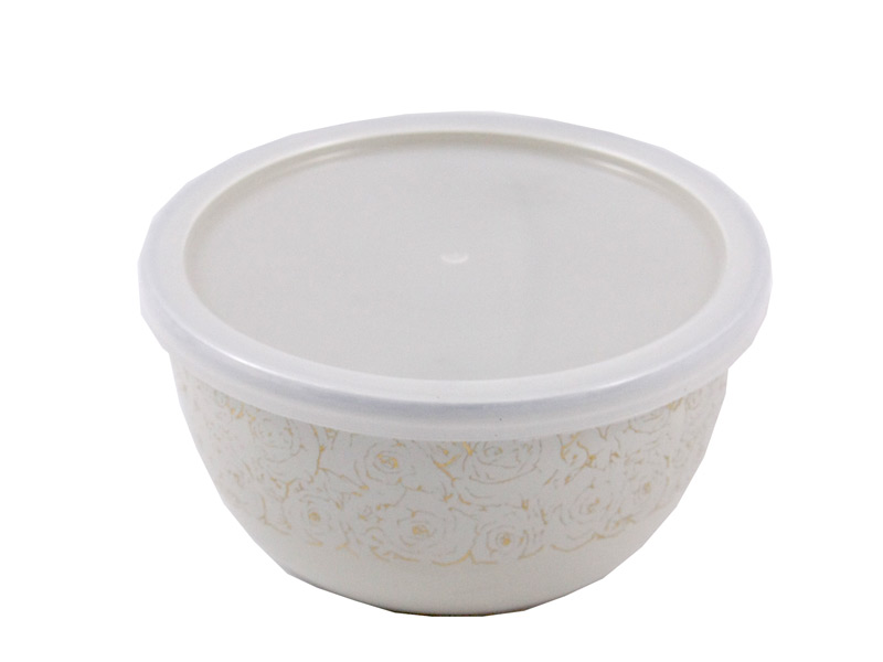 Салатник эмал.1415бежевая роза14см.1л.с крышк.. Салатник эмал.металл. 1415 Бежевая роза 14 см.1 л. с крышкой