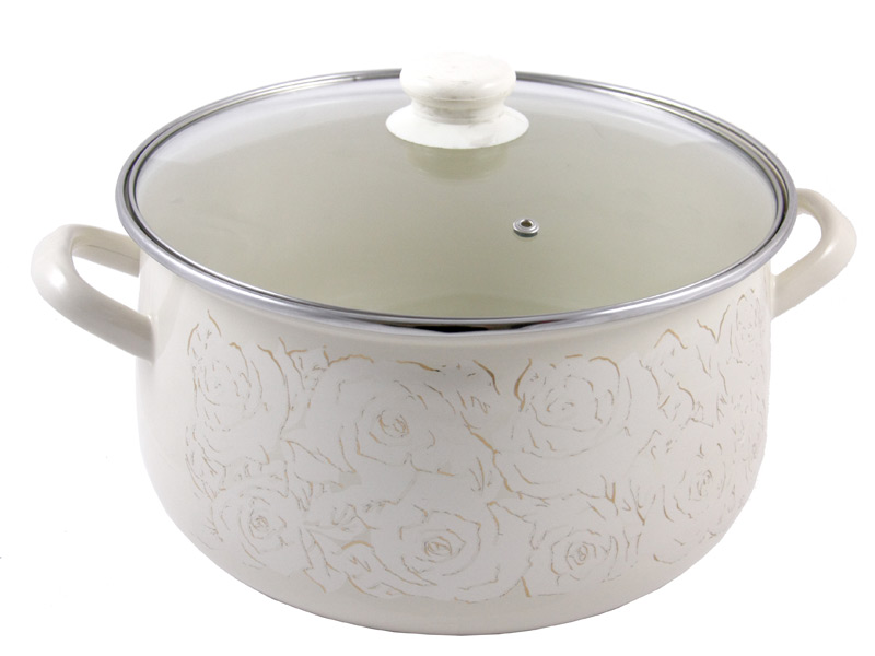 Кастрюля эмал.1415бежевая роза26см.8л.
