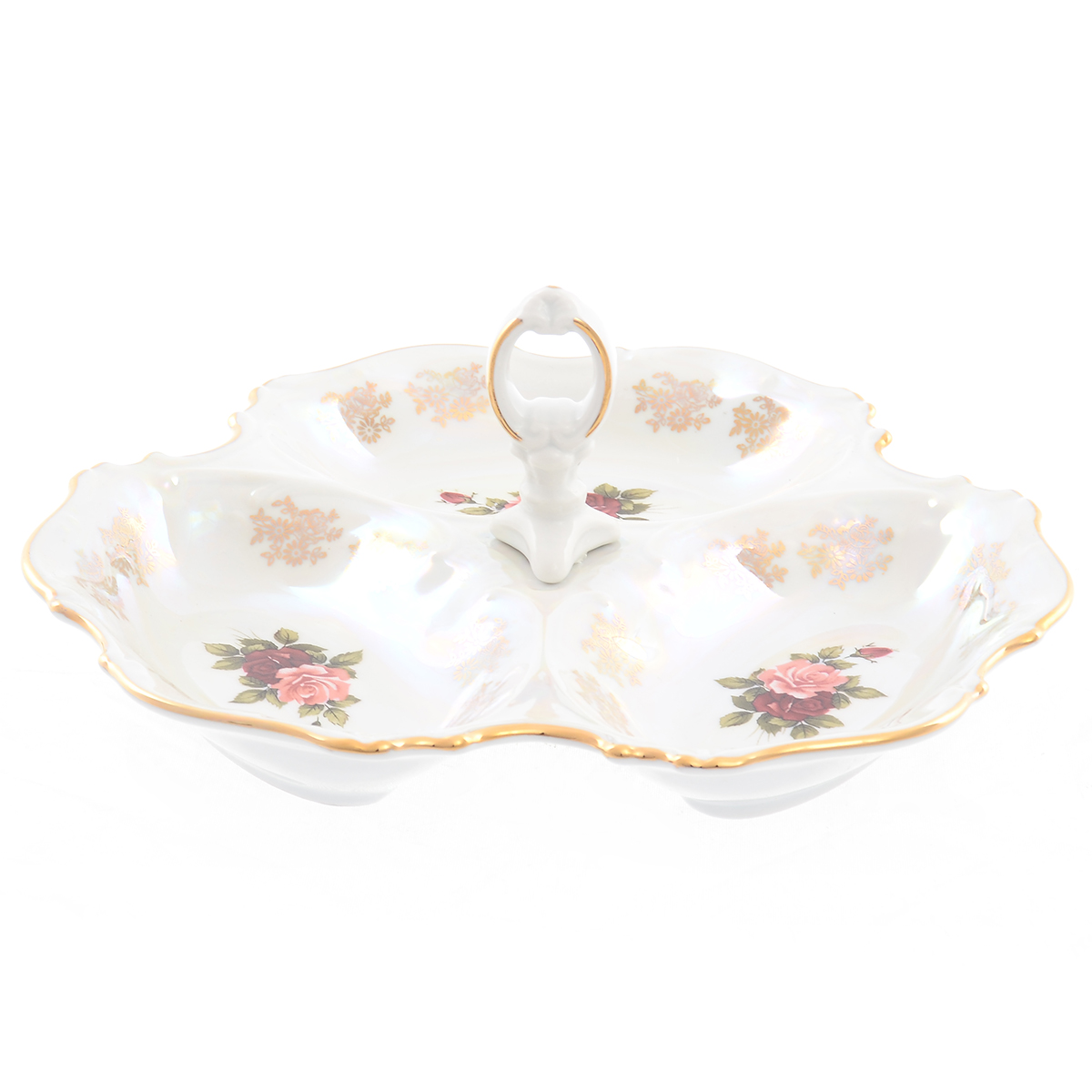 Менажница carlsbad фредерика роза перламутр 24 см. Менажница Carlsbad Фредерика Роза перламутр Три отделения для вашей фантазии: когда хочется всего и понемногу! Качественный фарфор, шикарный орнамент и яркий, насыщенный декор – залог популярности и востребованности изделий представленной коллекции. А еще ручка оригинальной формы для удобной подачи к столу.  развернуть описание ▼