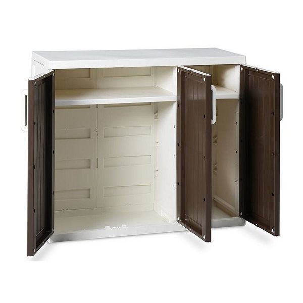 Тумба пластиковая Toomax Wood Line S узкая 3 двери 2 полки коричневая