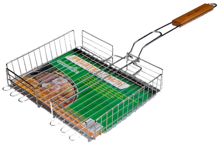 Двойная объемная решетка-гриль 7002. Двойная решетка-гриль – это удобное приспособления для приготовления вкусных блюд из мяса, рыбы, овощей на свежем воздухе с помощью углей. Решетка имеет удобную деревянную ручку, а благодаря компактности и небольшому весу, ее всегда можно взять с собой на пикник. • Вес нетто: 0,718 кг • Размер (длина + ручка/ширина/высота): 25+40х31х5 см • Материал: углеродистая сталь • Толщина: 4,5 мм (ручка); 3,0 мм (основной каркас); 1,8 мм (внутренняя обрешетка) • Покрытие: хромированное • Ручка: деревянная • Количество в коробке: 16 штук • Размер коробки: 66х32,5х32,5 см • Объем коробки: 0,070 м3 • Вес брутто коробки: 12,5 кг • Производитель: Green Glade • Страна: Китай