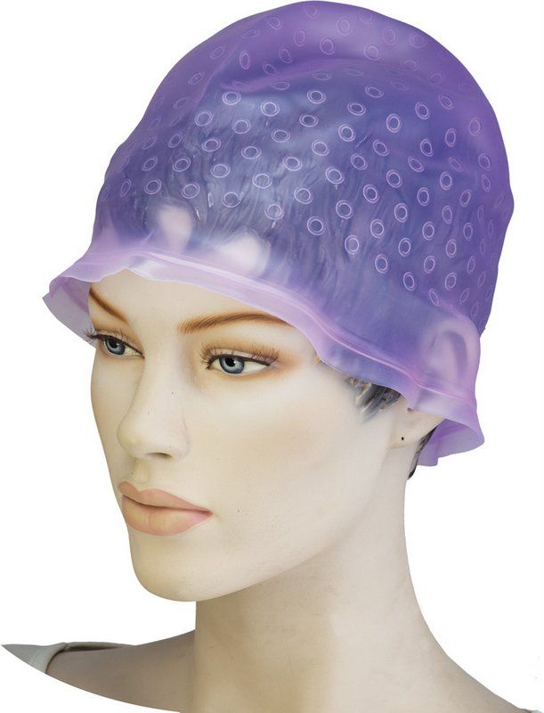 Шапочка ca091-a для мелирования с крючком, силикон, фиолетовая.