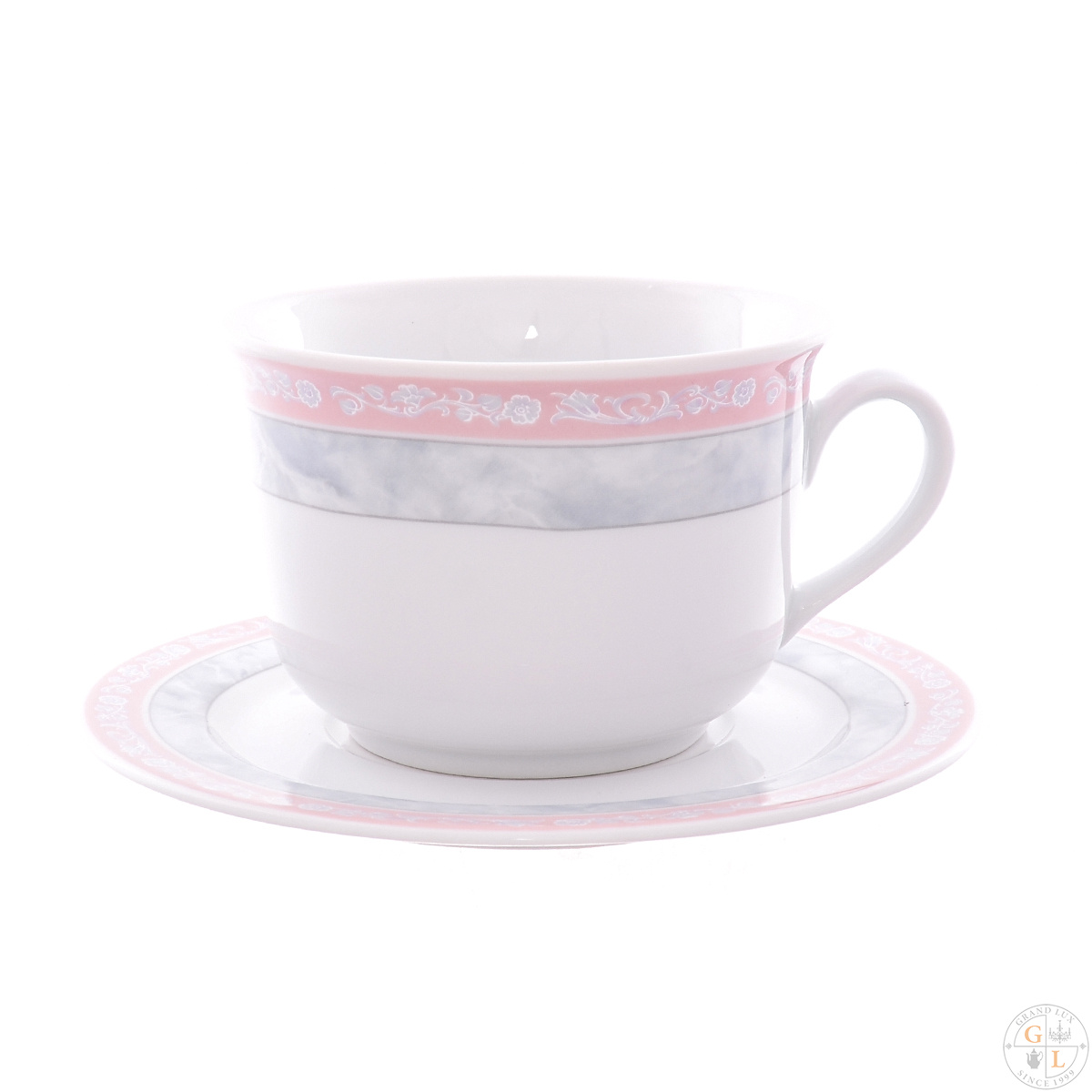 Набор чайных пар 380 мл яна серый мрамор с розовым кантом (6 пар)