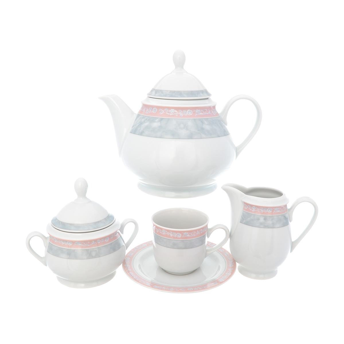 Чайный сервиз на 6 персон Thun яна серый мрамор с розовым кантом 17 предме