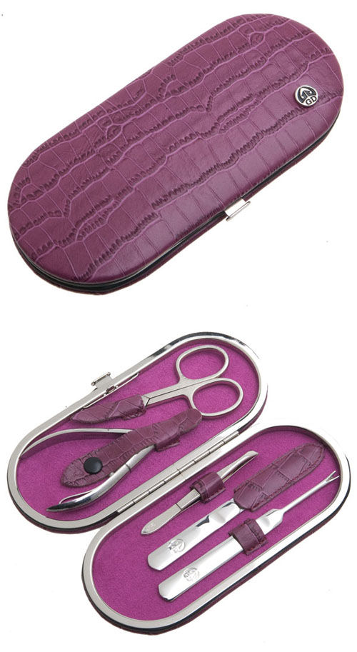 Маникюрный набор Gd, 5пр. футляр: натур.кожа, цвет розовый
