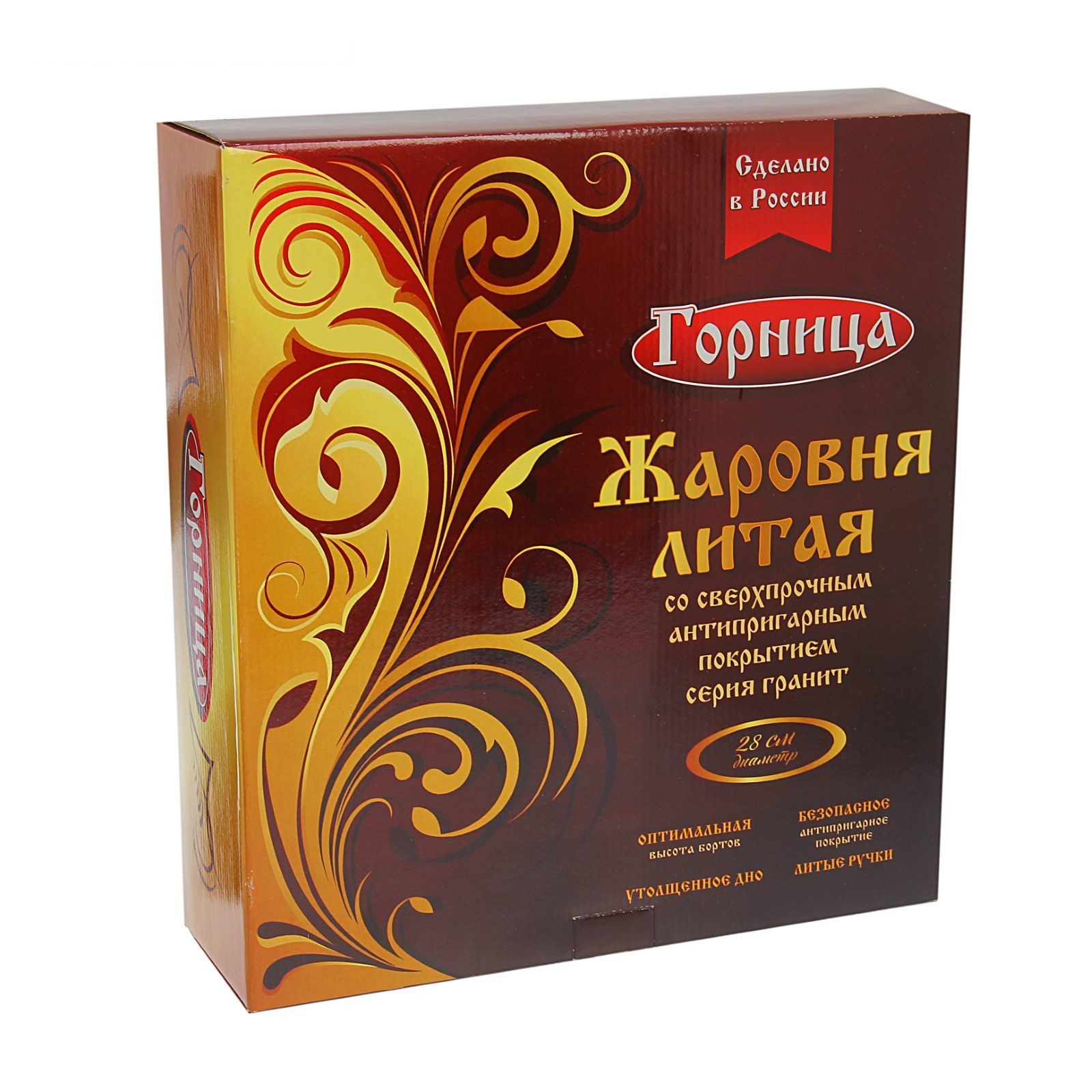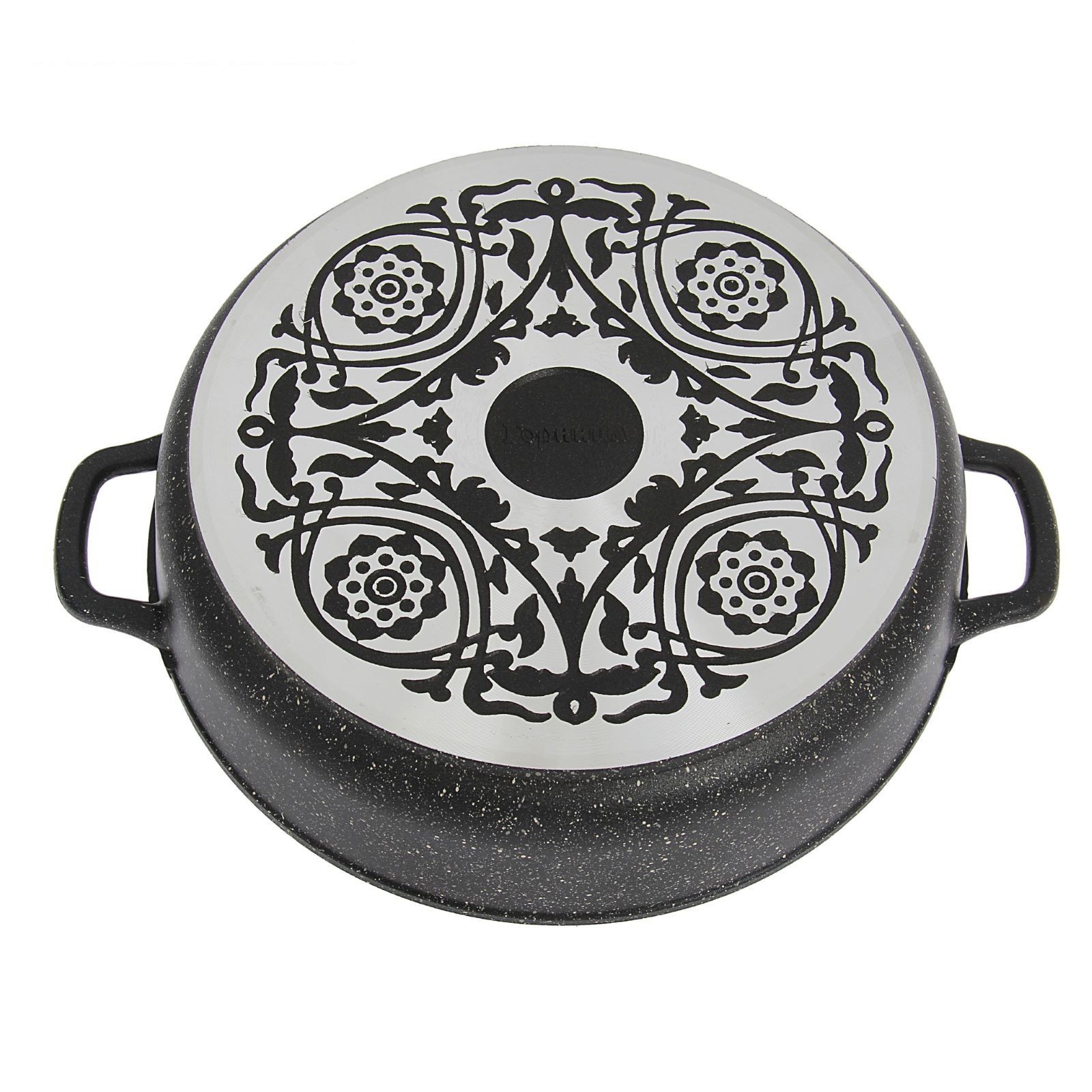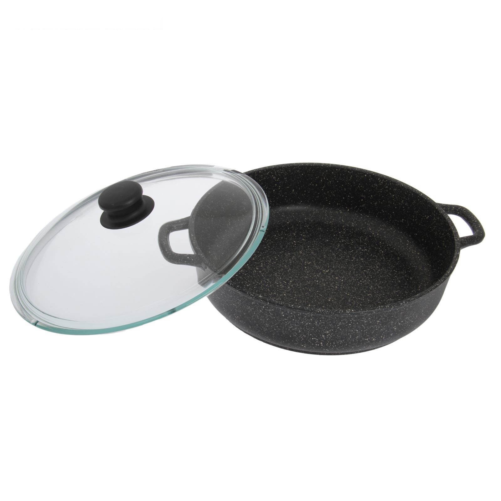 Жаровня 28 см гранит, H=7 см, стеклянная крышка