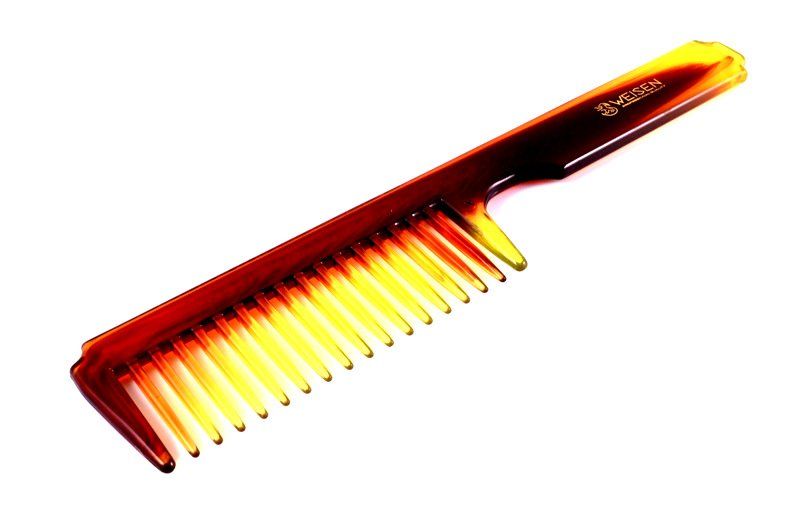 Гребень 1267 f-1 с ручкой 21,7 см ( 50/500). Бренд: Weisen Количество в коробке: 50/500 Длина: 21,7 см Материал (состав): Акрил (acrylic) Цвет: Янтарный Особенности: Термостойкость до 160 C Страна-изготовитель: Китай