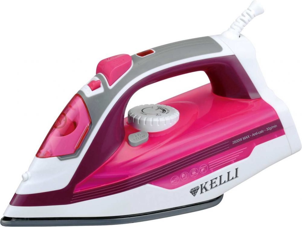 Утюг kl-1627 kelli 2600вт керам.покр. самоочист. цв.в асс.. УТЮГ ПАРОВОЙ. Мощность 2600Вт., 220В, 50 Гц Подошва с керамическим покрытием, функция самоочистки, встроенный пульверизатор, паровой удар, вертикальная глажка, терморегулятор, регулятор пара, защита шнура от перекручивания, защита от перегрева, сетевой индикатор  развернуть описание ▼