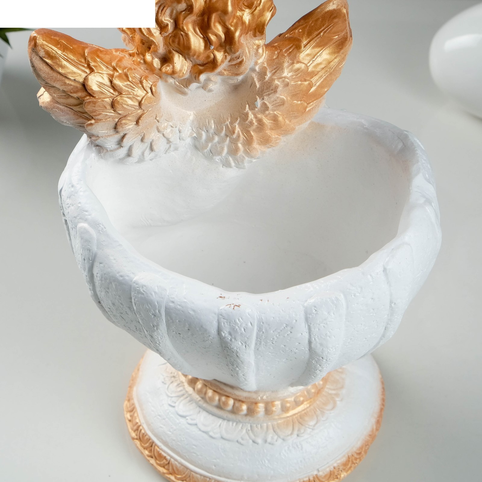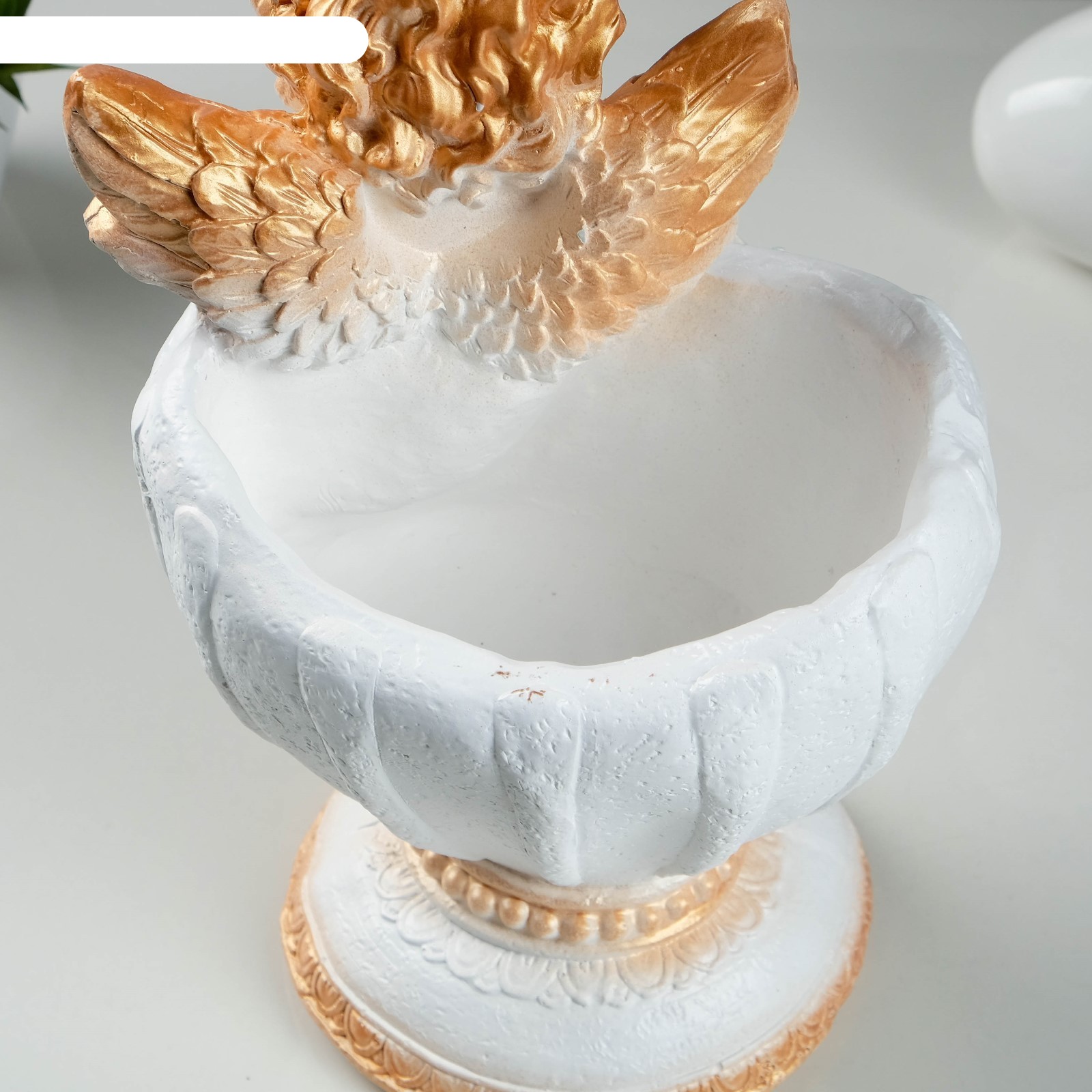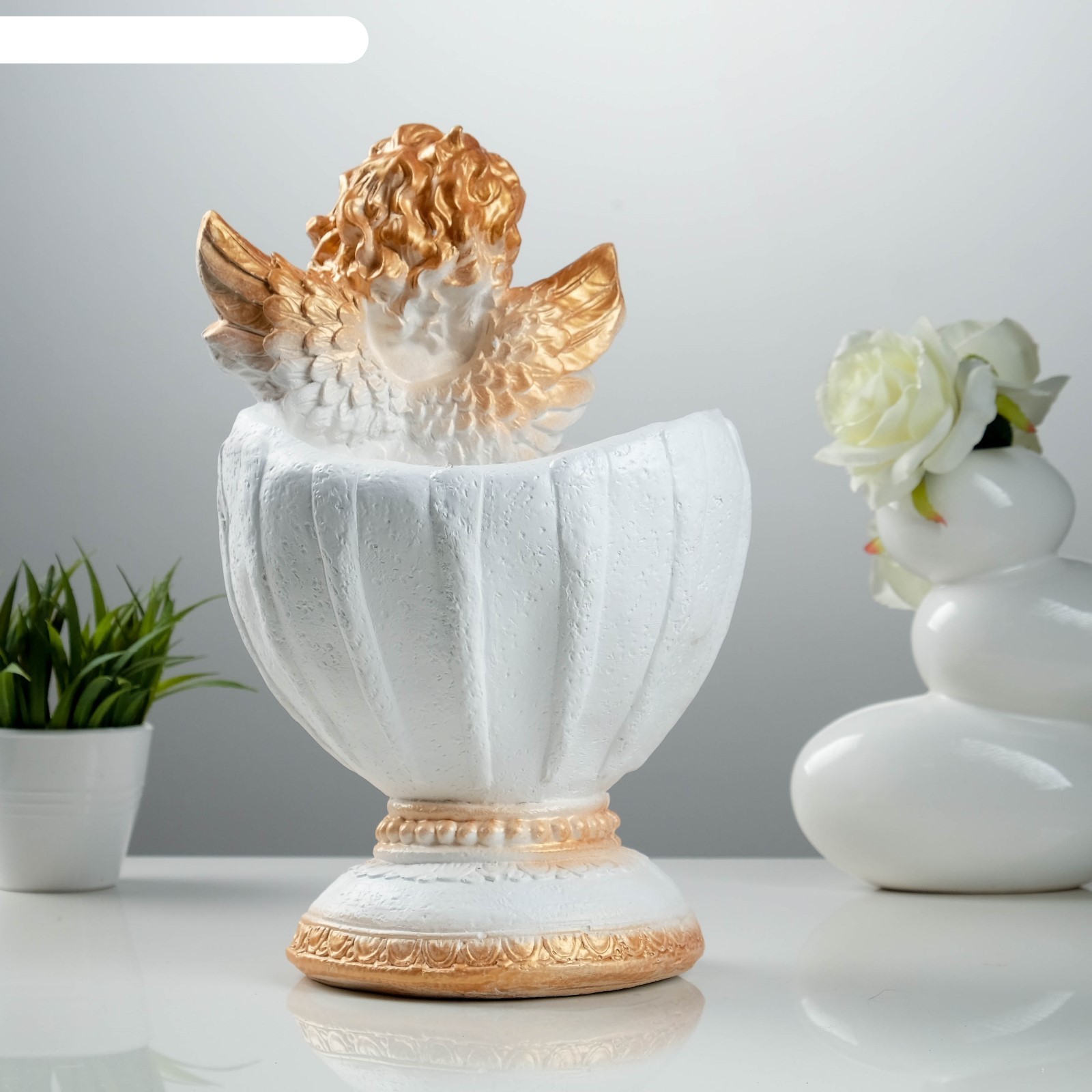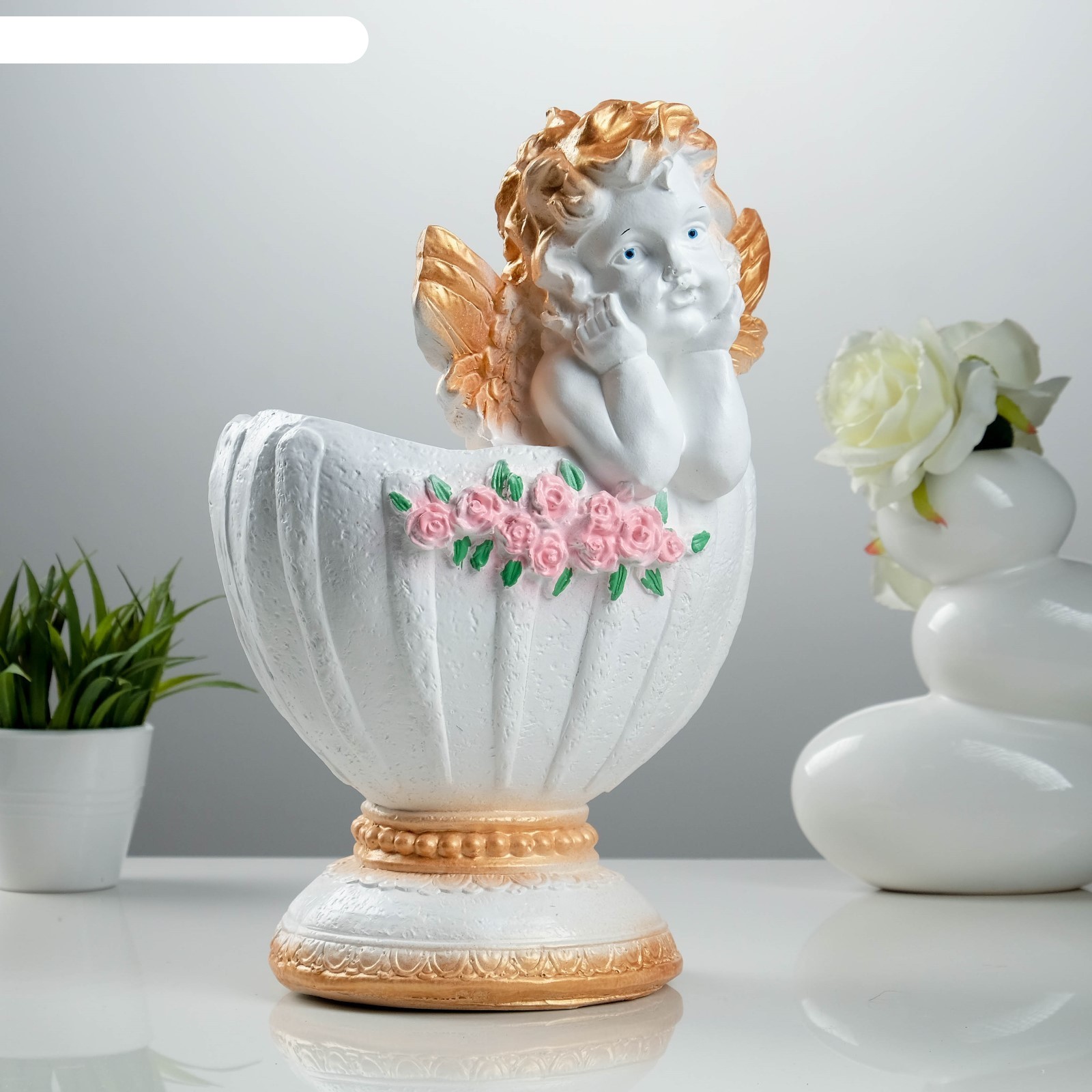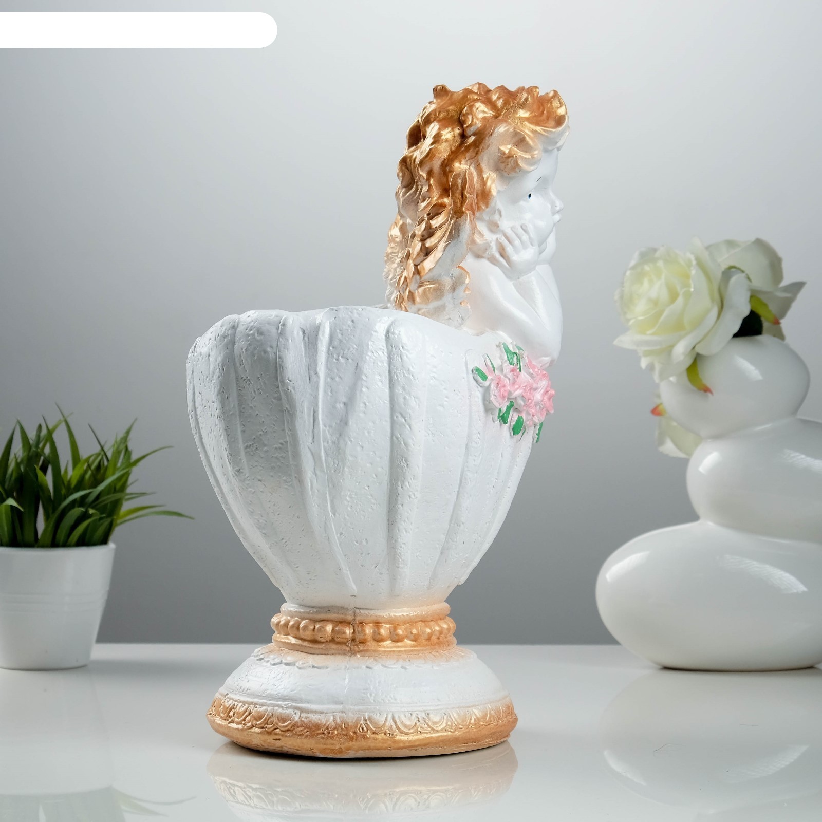 Фигурное кашпо ангел в вазе, бел.золотой 35см