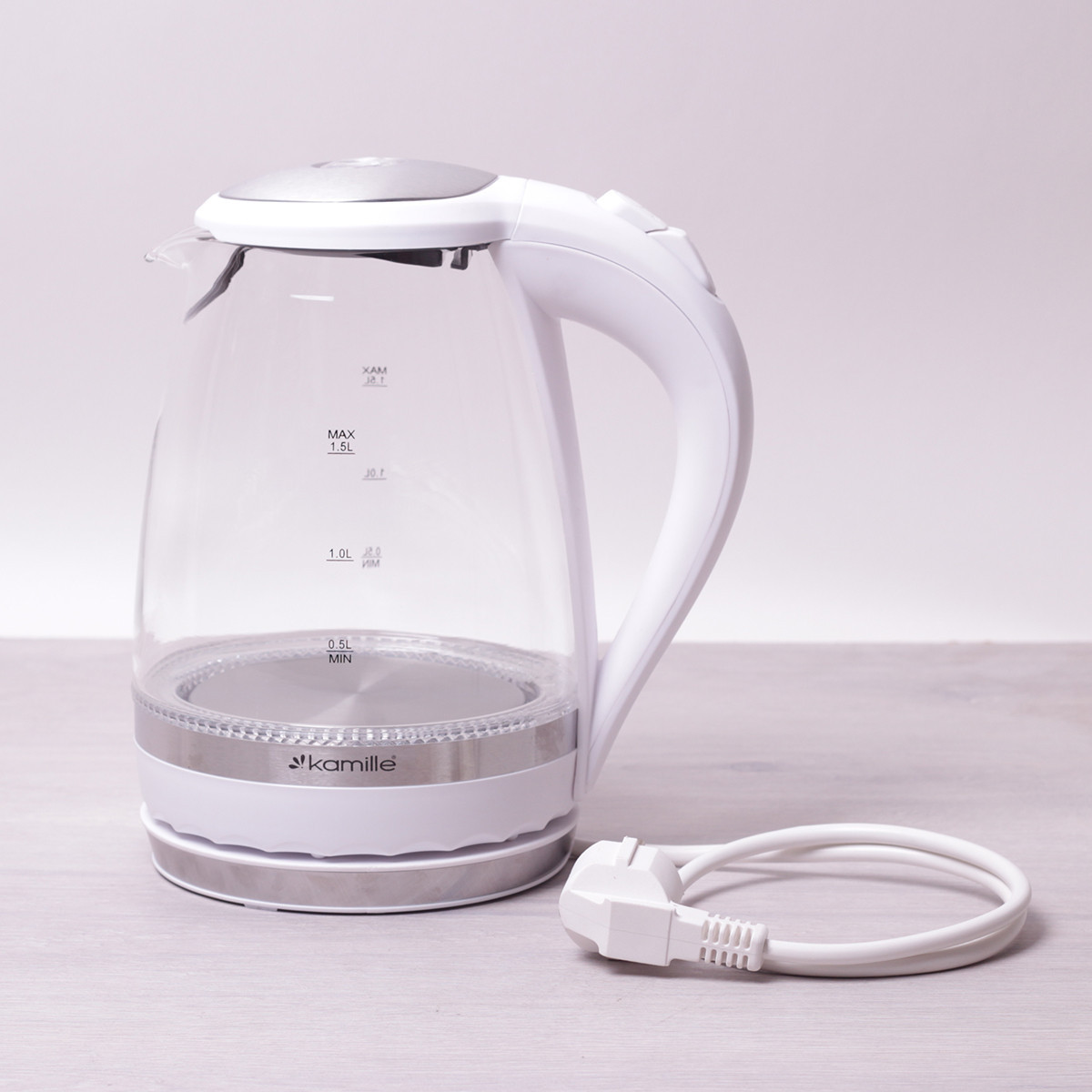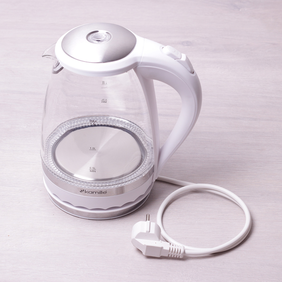Чайник электрический Kamille 1.5л с синей Led подсветкой и стальными декор