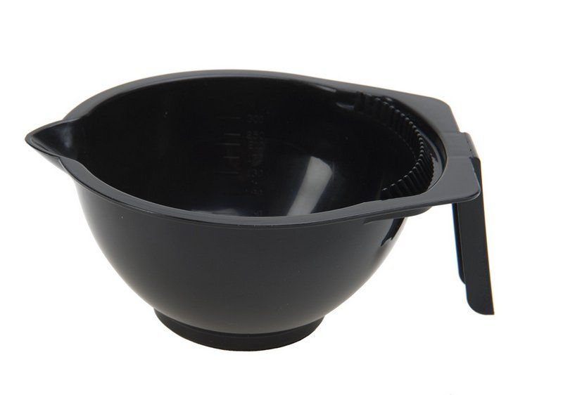 Чаша T-1265 для краски, черная, с ручкой, носиком и расческой на бортике,