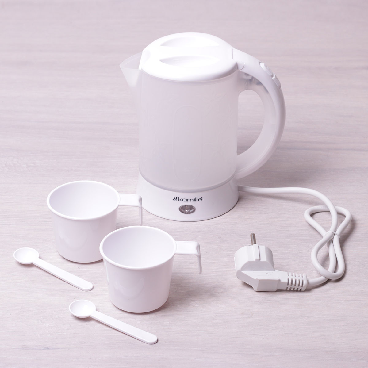 Чайник электрический Kamille 0.6л пластиковый (белый/матовый C чашками и л