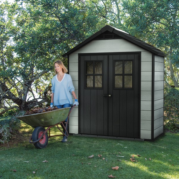 Сарай пластиковый keter oakland 754. Пластиковый сарай Keter Oakland 754 имеет отличительную особенность: при желании, его можно покрасить в любой понравившийся цвет, и, таким образом, домик органично впишется в интерьер садового участка. Сарай выполнен в стиле необтесанной древесины, что выглядит весьма натурально. Также имеются прочные дверцы, фактурная крыша и окно. Панели пола могут выдержать даже тяжелую технику, например, газонокосилки. Внутри сарая также предусмотрены вентиляционные отверстия. Изготовлен из качественного пластика, поэтому не гниет и не ржавеет. • Размер внешний #40;ШхГхВ #41;: 210 x 124,8 x 253 см • Материал: полипропилен • Тип поверхности/плетения: стилизация под дерево • Цвет: серый • Размер коробки:227 x 132 x 28,5 см • Производитель: Keter • Страна: Израиль